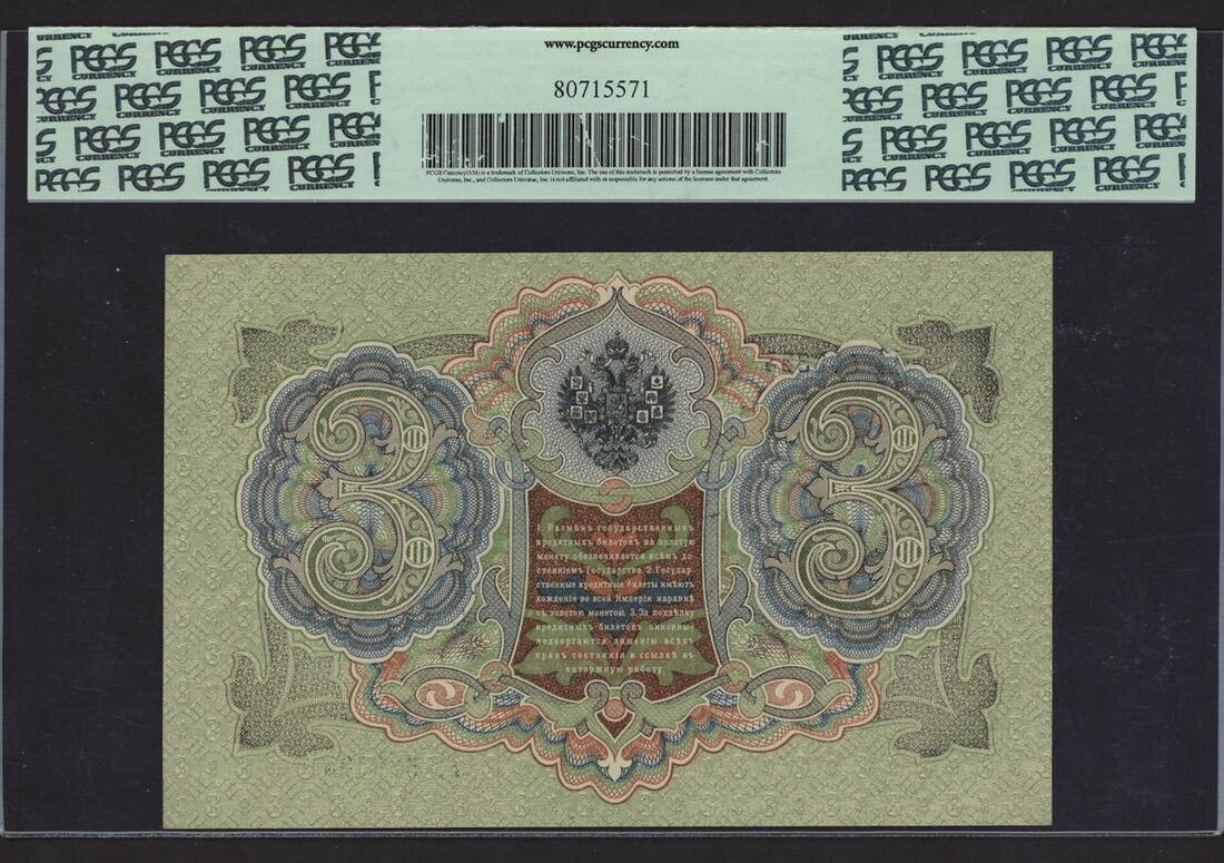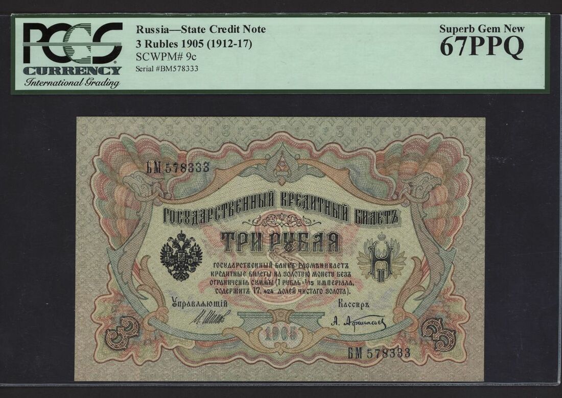 (x) State Credit Note, Russia, 3 rubles, 1905 (ND 1912-17), serial number BM578333, (Pick 9c), in PCGS holder 67 PPQ