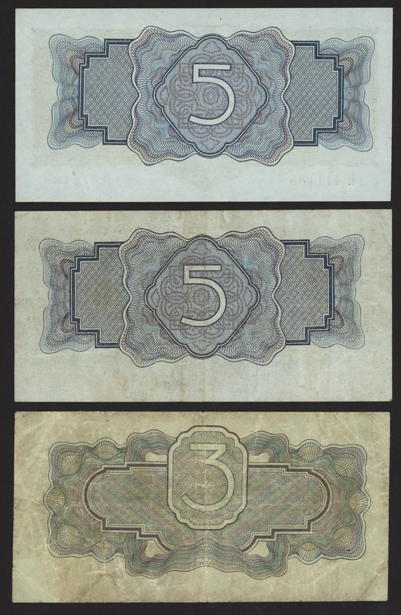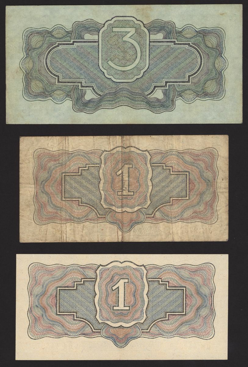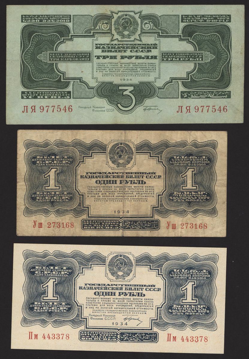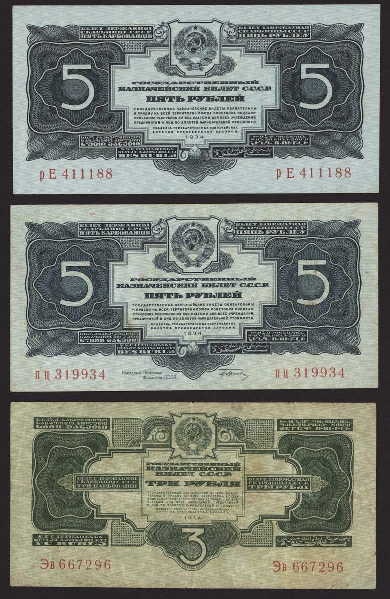 State Treasury Note, Russia, complete set of the 1934 issue, 1, 3 and 5 gold rubles, each with and without signatures