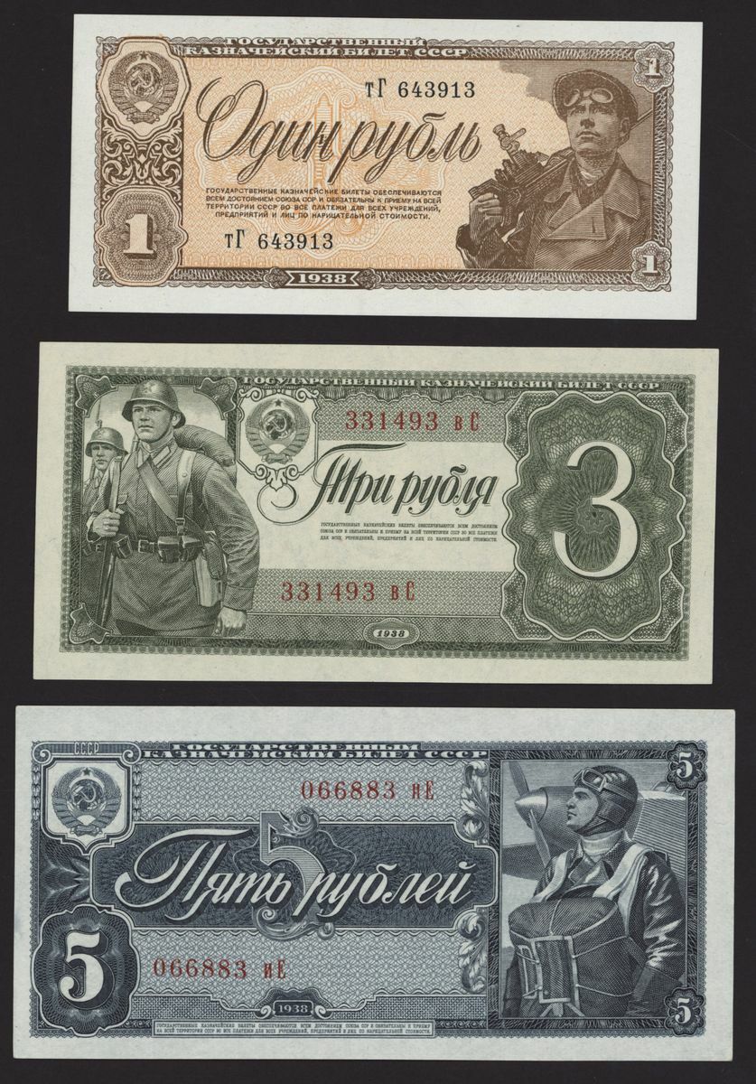 State Treasury Note, Russia, complete set of the 1938 issue, 1 ruble, serial number 643913,