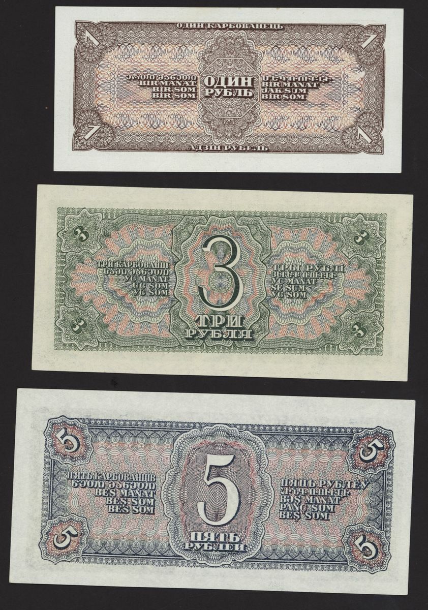 (Pick 213, 214, 215), 3 rubles uncirculated, others about uncirculated (3 notes)