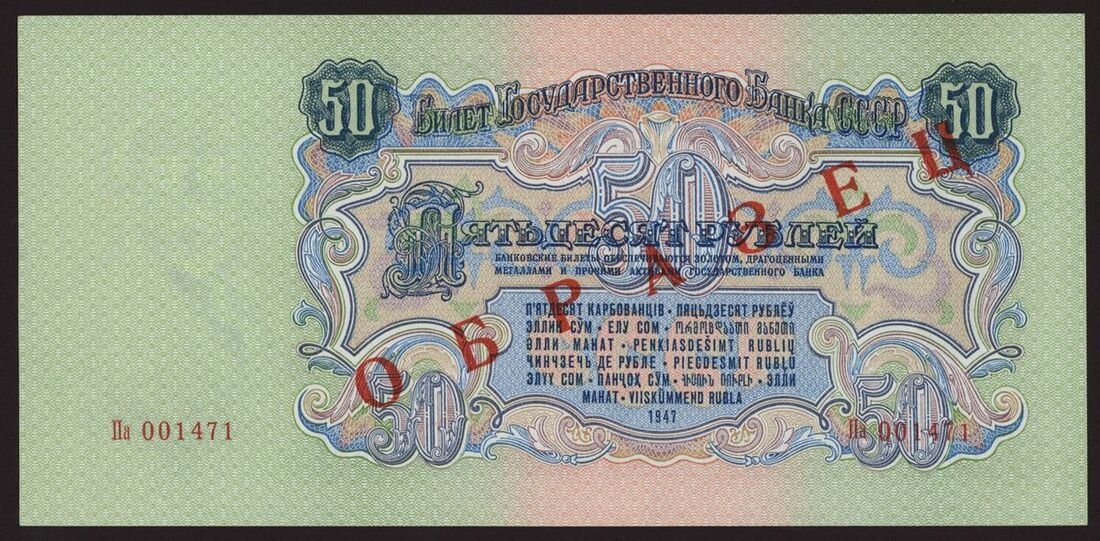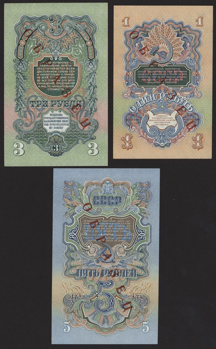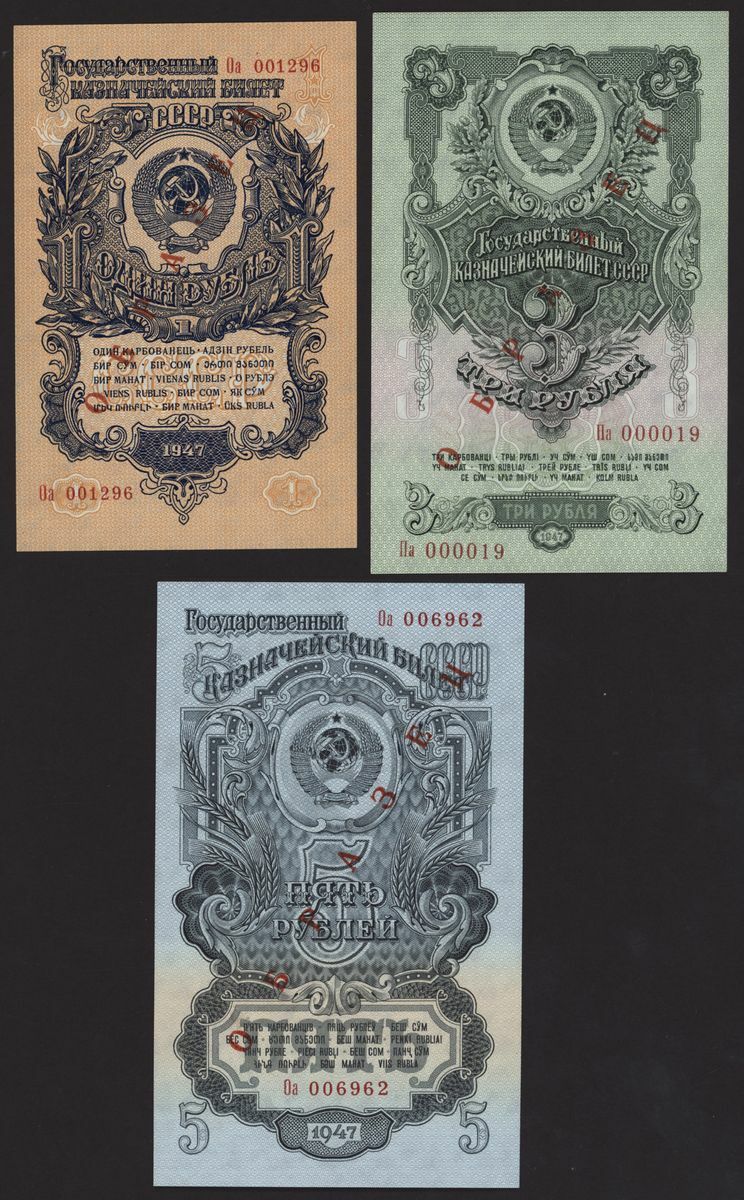 Russia, a group of specimens, 1947 (ND 1957), State Treasury Note, 1 ruble, 3 rubles, 5 rubles,