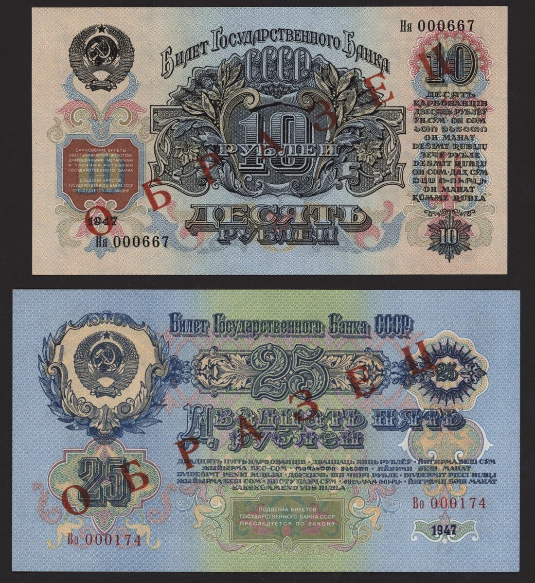 State Bank Note USSR, 10 rubles, 25 rubles, 50 rubles, 100 rubles
