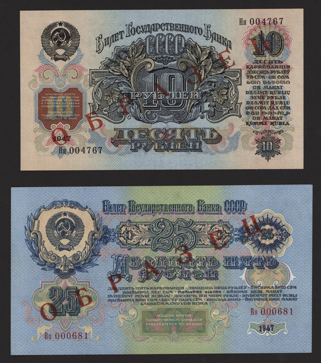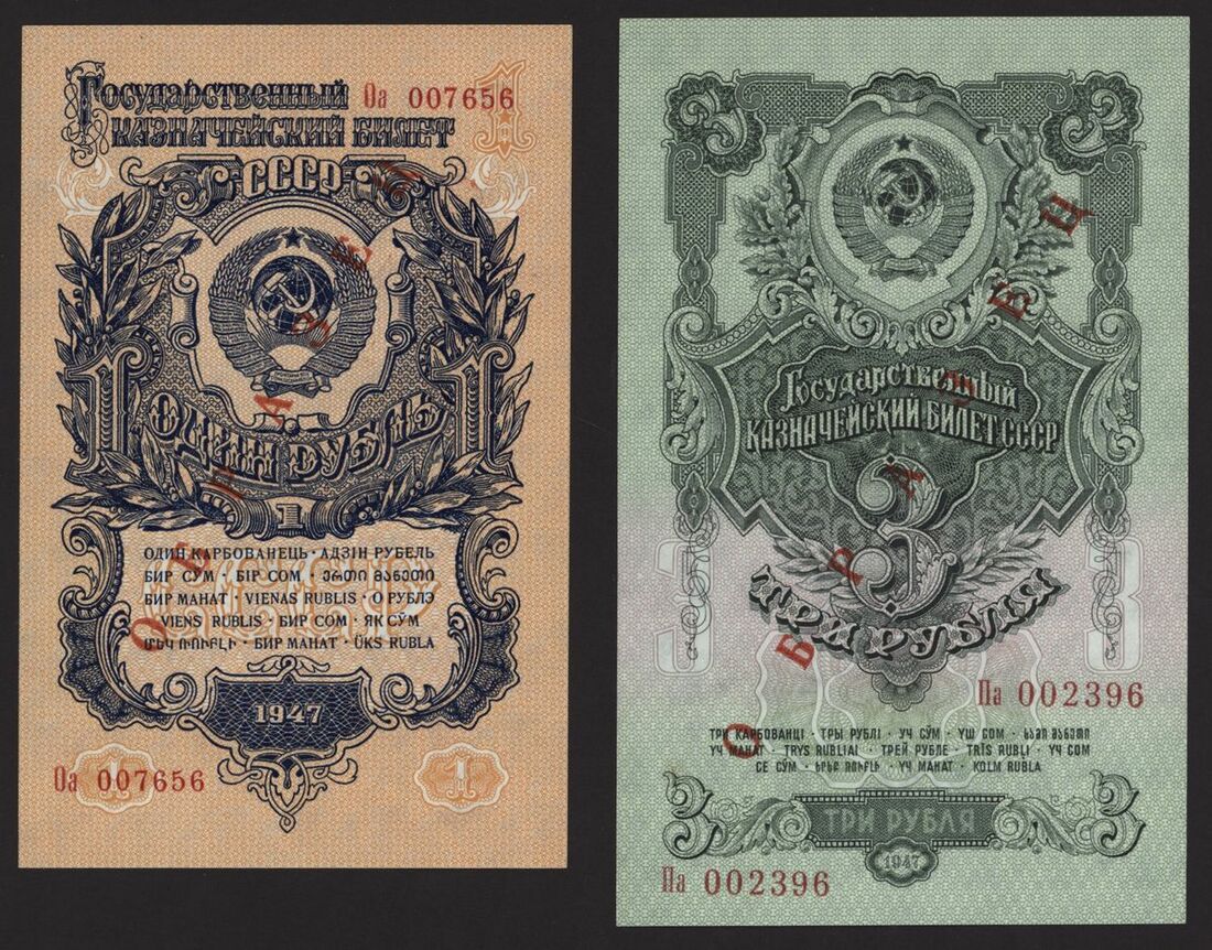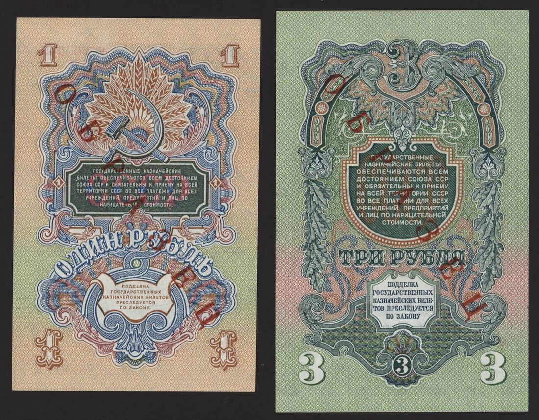 Russia, a group of specimens, 1947 (ND 1957), State Treasury Note, 1 ruble, 3 rubles,
