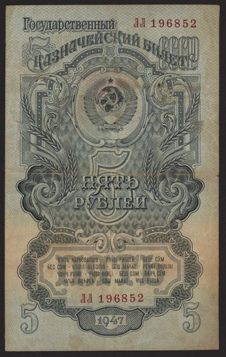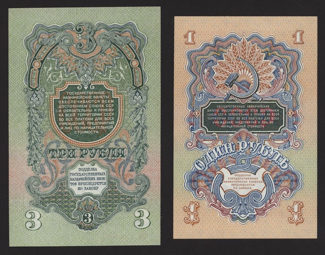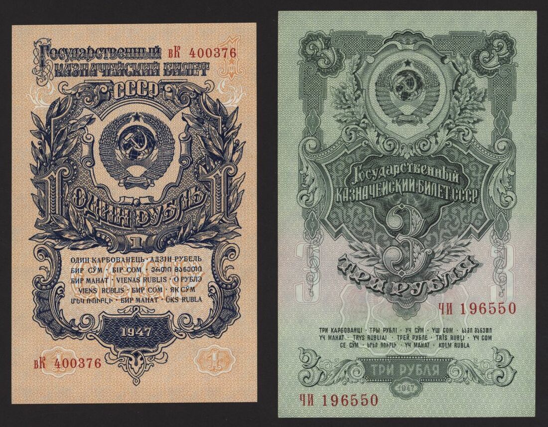 Russia, a group of notes, 1947 (ND 1957), State Treasury Note, 1 ruble, 3 rubles, 5 rubles,