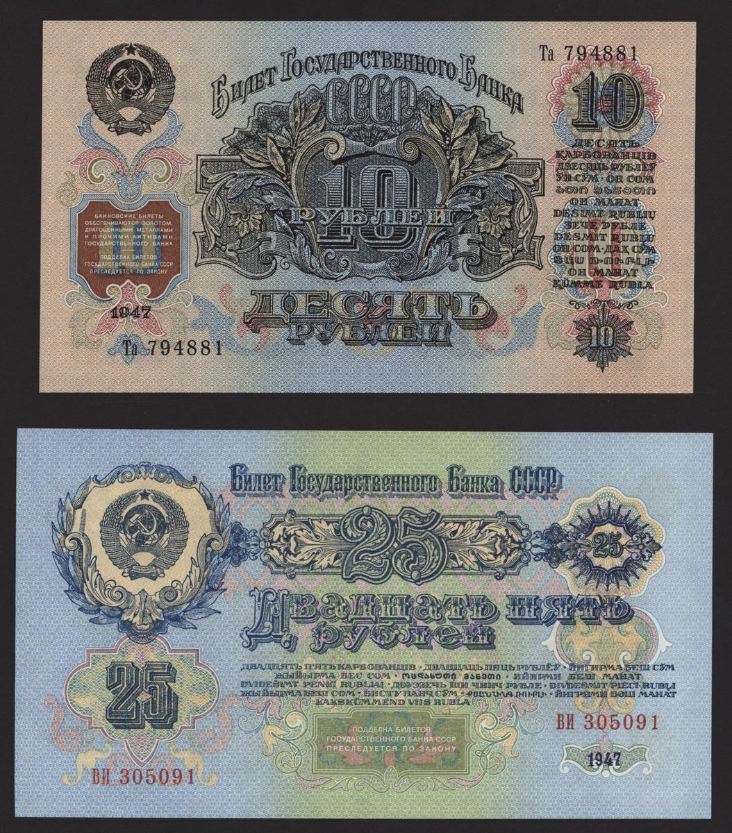 State Bank Note USSR, 10 rubles, 25 rubles, 50 rubles, 100 rubles