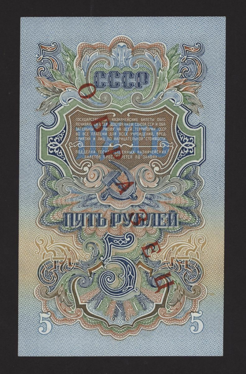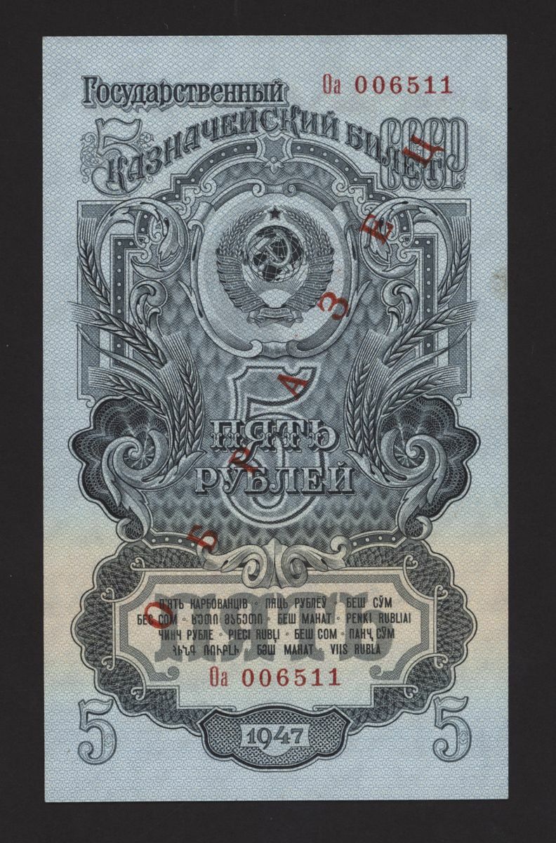 State Treasury Note, Russia, specimen 5 rubles, 1947, serial number 006511, (Pick 220), uncirculated