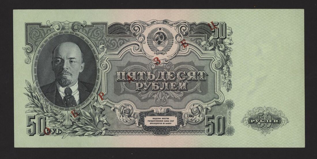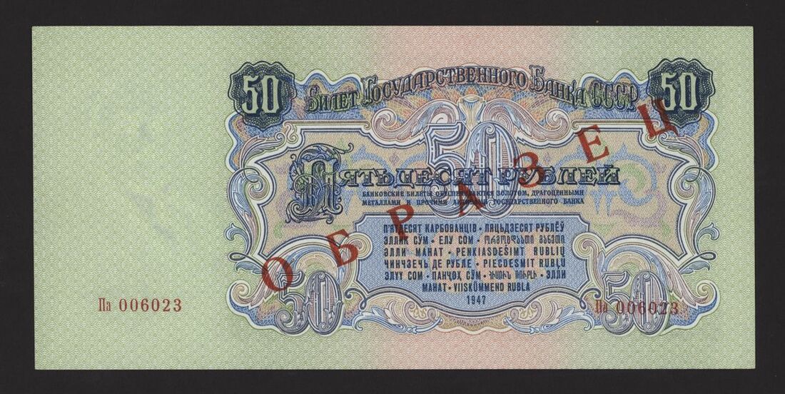 State Bank of USSR, Russia, specimen 50 rubles, 1947 (1957), serial number 006023, (Pick 230), about uncirculated