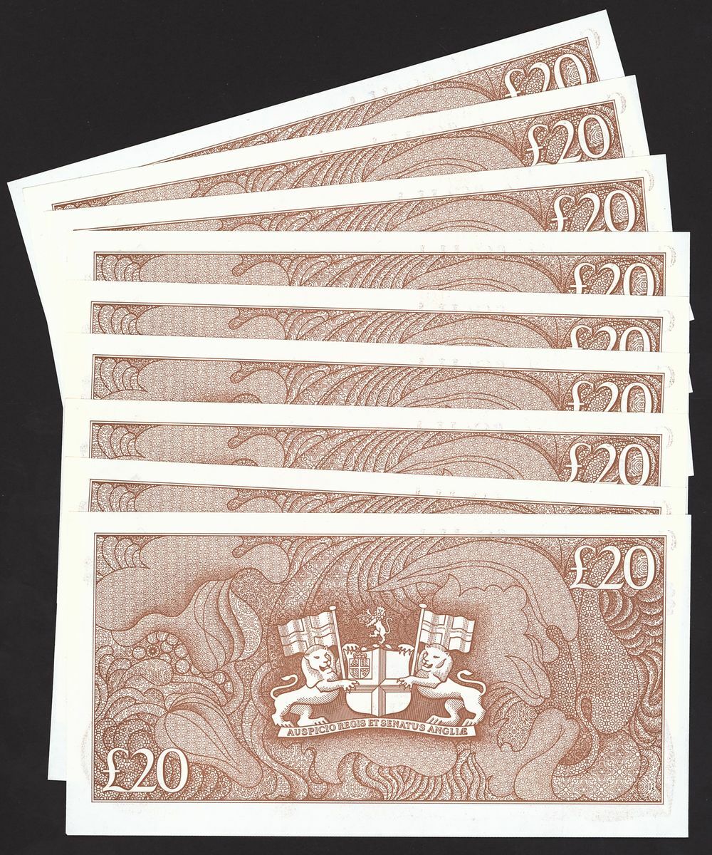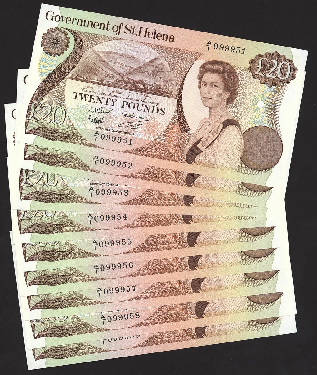 Government of Saint Helena, consecutive group of £20, ND (1986), serial numbers A/1 099951-9, (Pick 10a), uncirculated (9 notes)