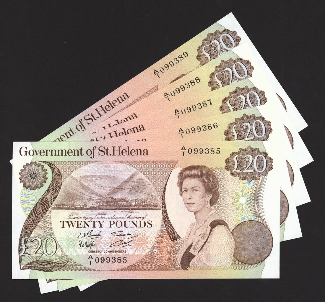 Government of Saint Helena, consecutive group of £20, ND (1986), serial numbers A/1 099385-9, 40-80