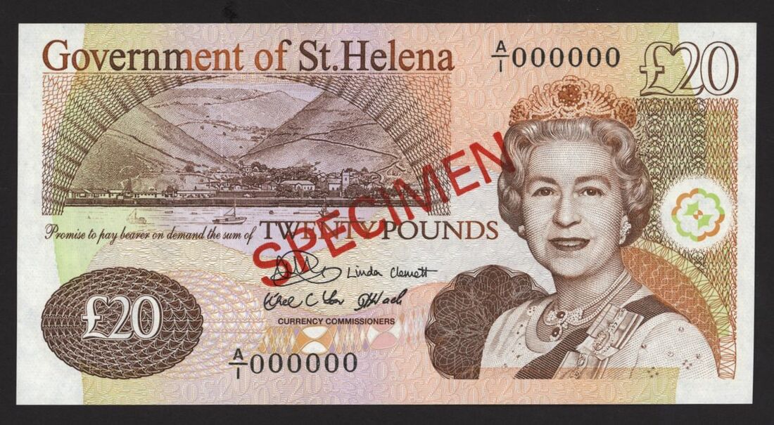 Government of Saint Helena, specimen £20, 2004, serial number A/1 000000, (Pick 13s), about uncirculated, only 300 issued