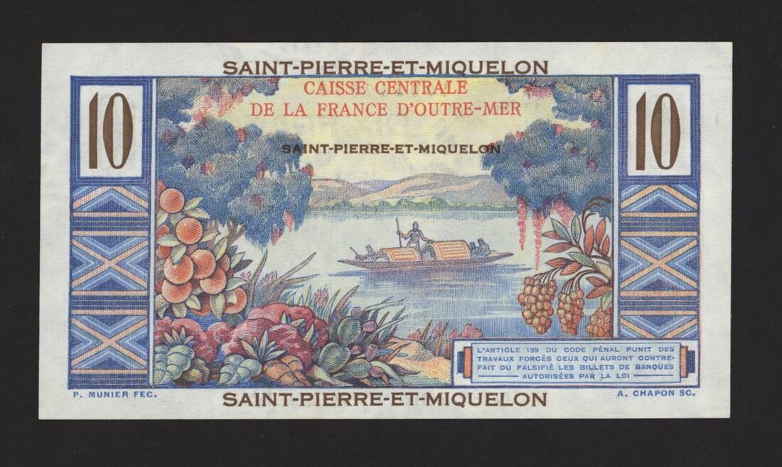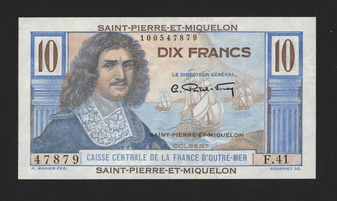 Caisse Centrale de la France d'Outre-Mer, Saint Pierre & Miquelon, 10 francs, ND (1950-60), serial number F.41 47879, (Pick 23), about uncirculated