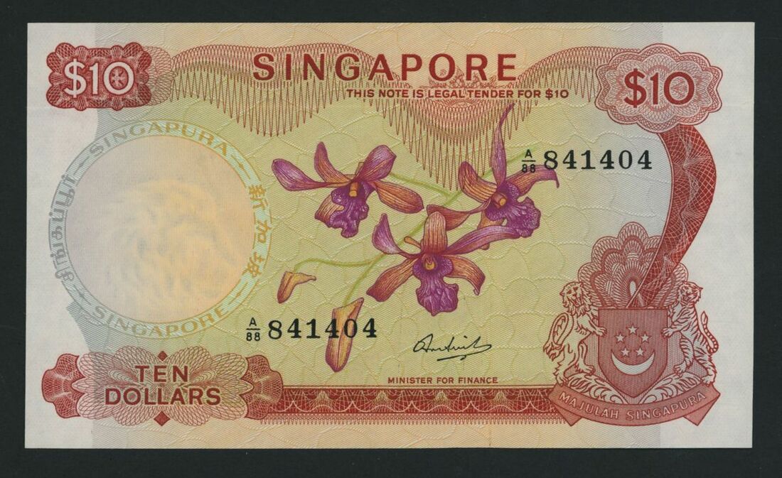 Board of Commissioners of Currency, Singapore, 10 dollars, ND (1973), serial number A/88 841404, (Pick 3c, BNB 103), about extremely fine