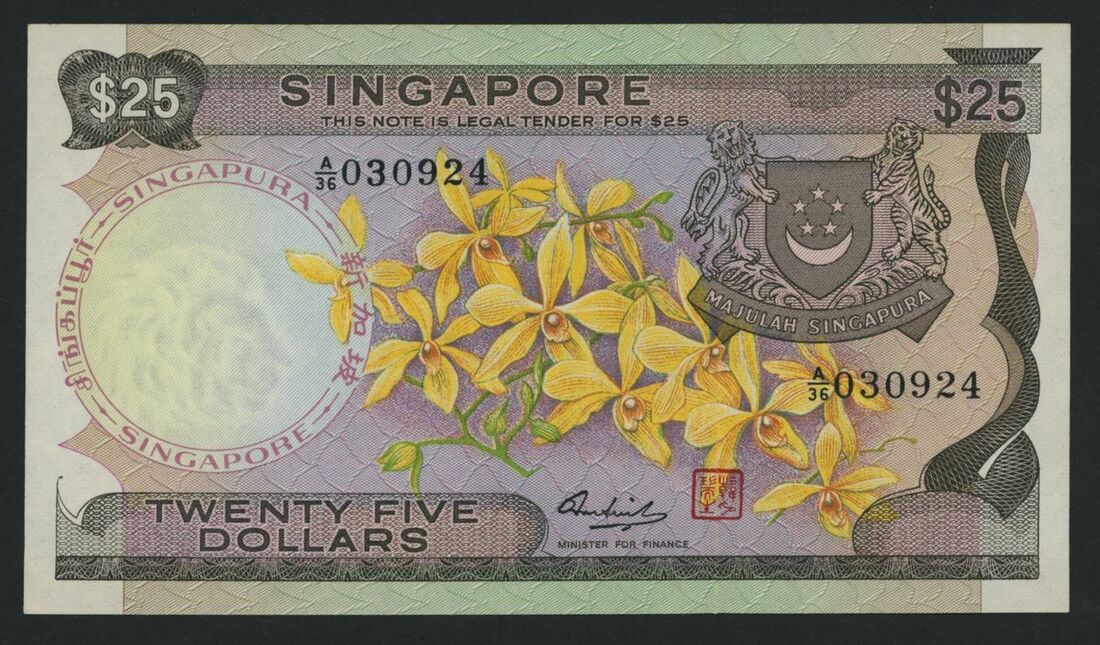 Board of Commissioners of Currency, Singapore, 25 dollars, ND (1972), serial number A/36 030924, (Pick 4, BNB 104), good extremely fine