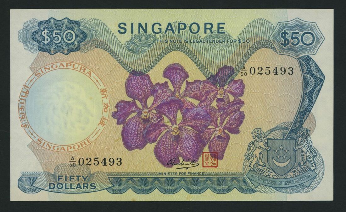 Board of Commissioners of Currency, Singapore, 50 dollars, ND (1973), serial number A/50 025493, (Pick 5d, BNB 105), good extremely fine