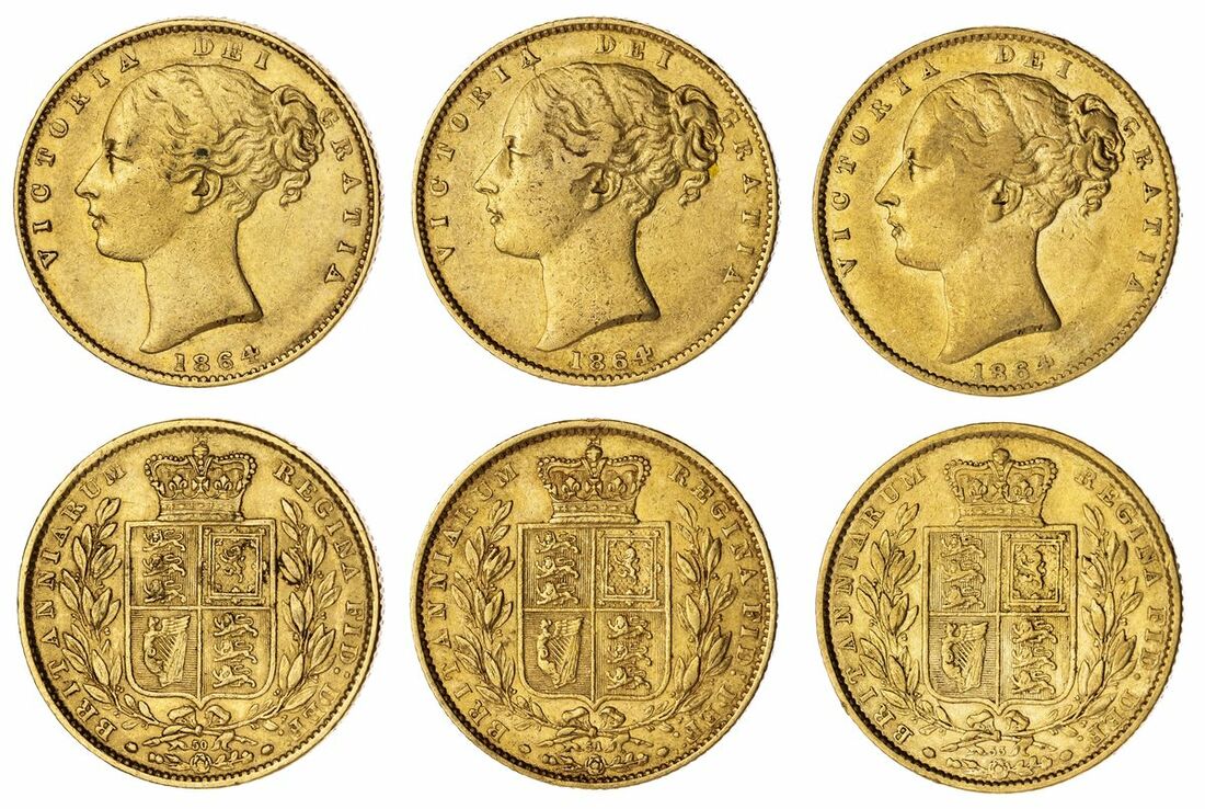 (g) Victoria (1837-1901), 'Shieldback' Sovereigns, 1864, 'Stub-top 4', Type IB (3), [Die 50], second larger young head,