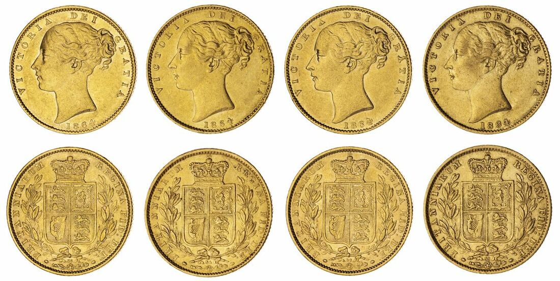 (g) Victoria (1837-1901), 'Shieldback' Sovereigns, 1864, 'Stub-top 4', Type IB (4), [Die 54], second larger young head,