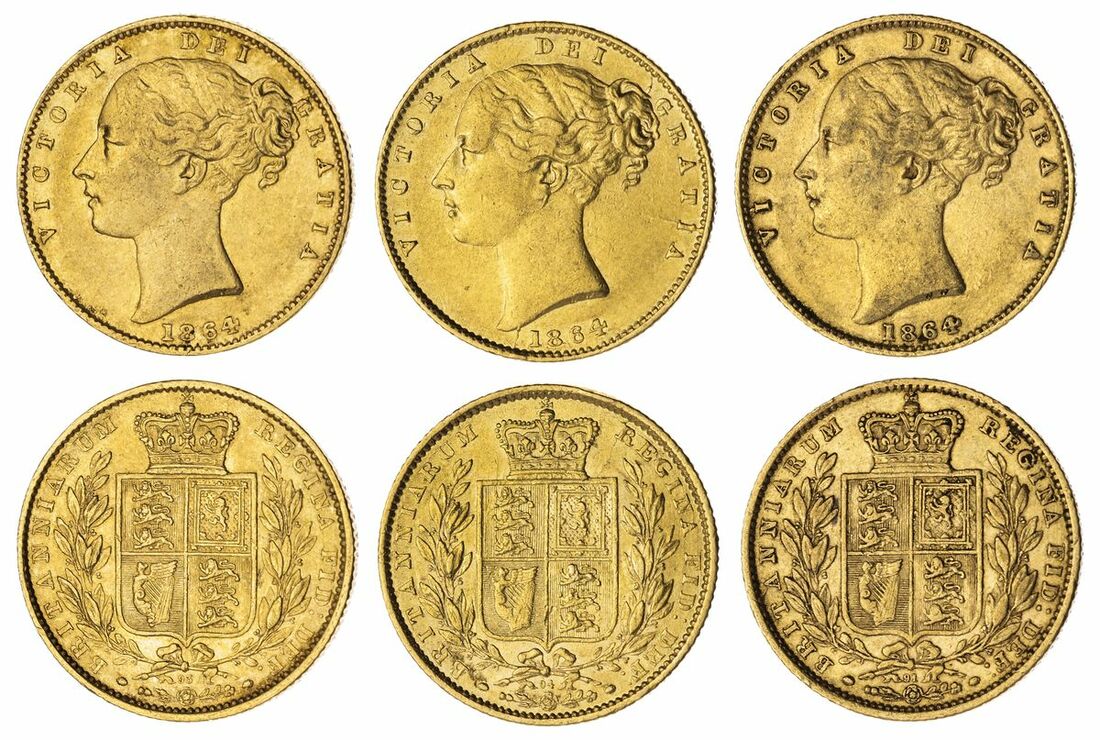 (g) Victoria (1837-1901), 'Shieldback' Sovereigns, 1864, 'Stub-top 4', Type IB (3), [Die 91], second larger young head,