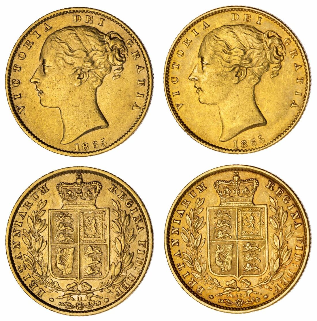 (g) Victoria (1837-1901), 'Shieldback' Sovereigns, 1865, Type IB (2), 'Large 5', [Die 11], second larger young head,