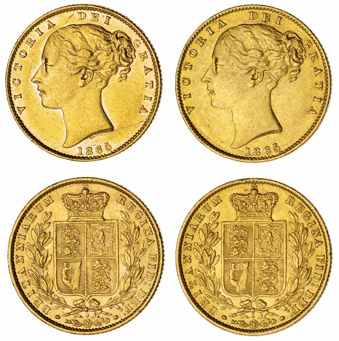 (g) Victoria (1837-1901), 'Shieldback' Sovereign, 1865 [Die 19], Type IB, second larger young head,
