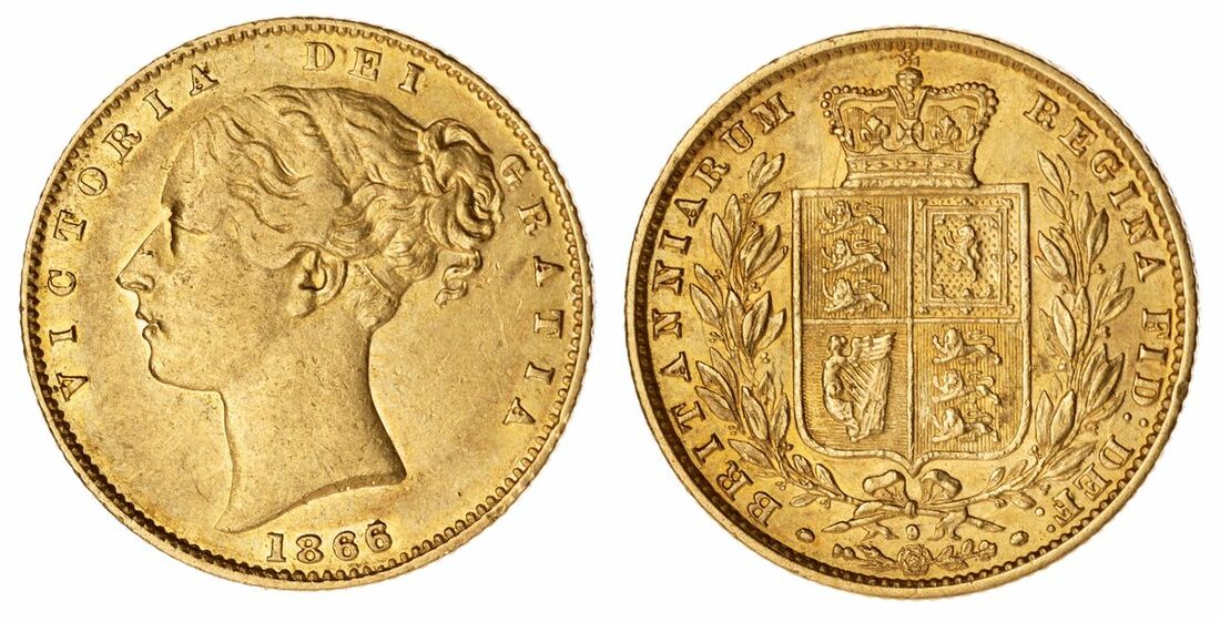 (g) Victoria (1837-1901), 'Shieldback' Sovereign, 1866 over 5 [Die 9], second larger young head,