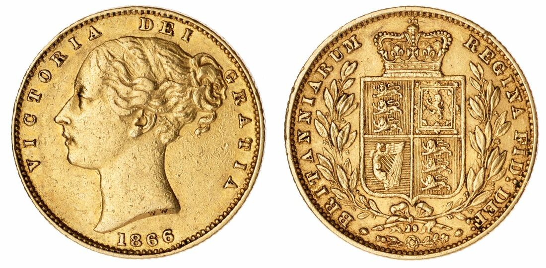 (g) Victoria (1837-1901), 'Shieldback' Sovereign, 1866 [Die 29], legend doubling in