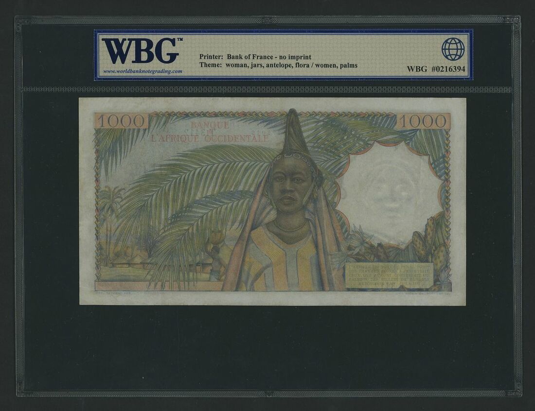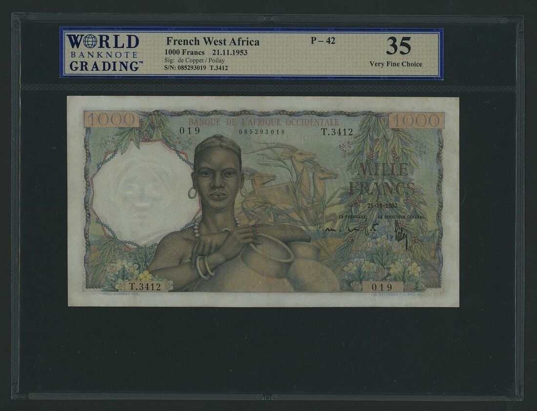 (x) Banque de l'Afrique Occidentale, French West Africa, 1000 Francs, 21st November 1953, serial number 085293013, (Pick 42, BNB 126l), in WBG holder 35 Very Fine Choice