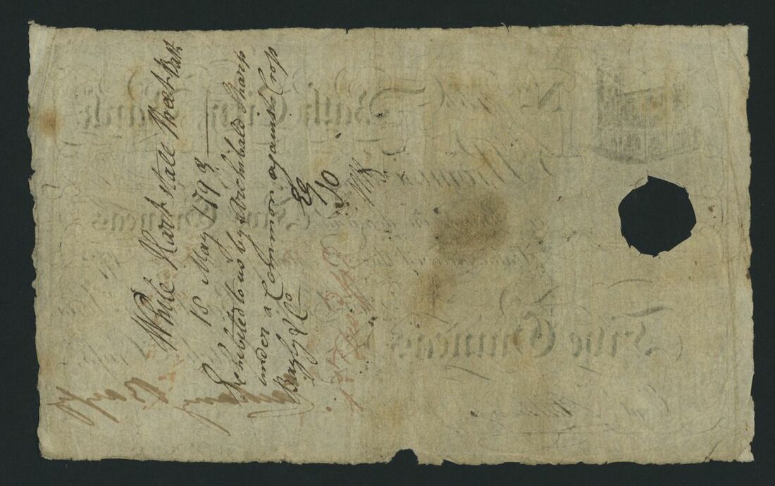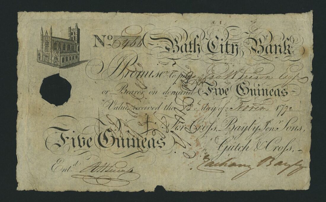 Bath City Bank, 5 Guineas, 13th November 1792, serial number 6466, (Outing 89c), fine, pinholes and punch hole