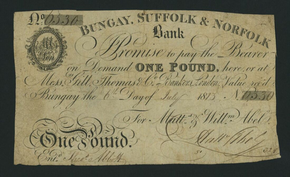 Bungay, Suffolk and Norfolk Bank, £1, 6th July 1813, serial number 6330, (Outing 360b), good fine