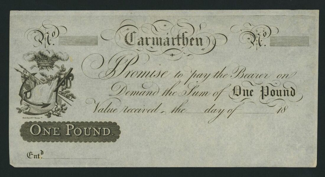Carmarthen, Welsh Provincial unissued, £1, 18--, no trading name mentioned
