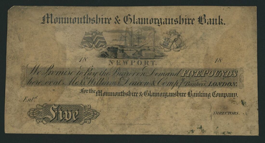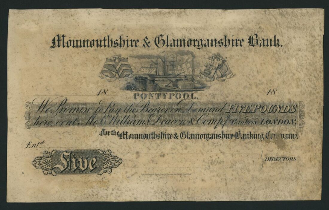 Monmouthshire and Glamorganshire Banking Company, [2 notes] pair of proofs, £5, Newport, Pontypool, 18--, (Outing 1547b, 1729), fine (2 notes)