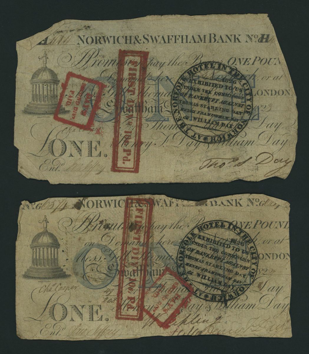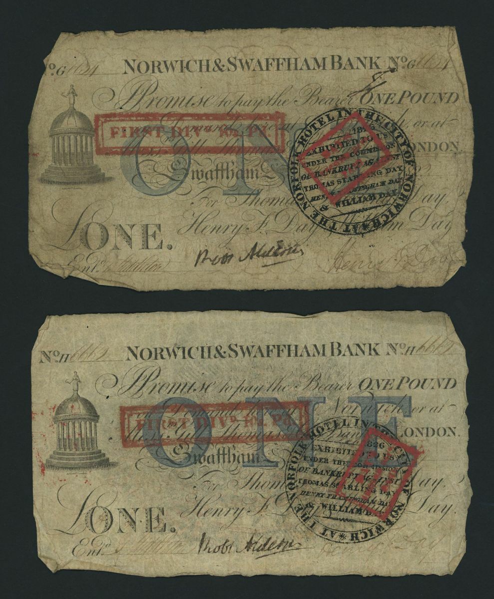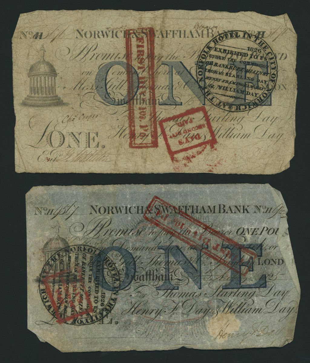 Norwich and Swaffham Bank, [15 notes] £1, £5, circa 1825, (Outing 1609i, 1609j), fair to very good, many pinholes, ink burns and discolouration (15 notes)