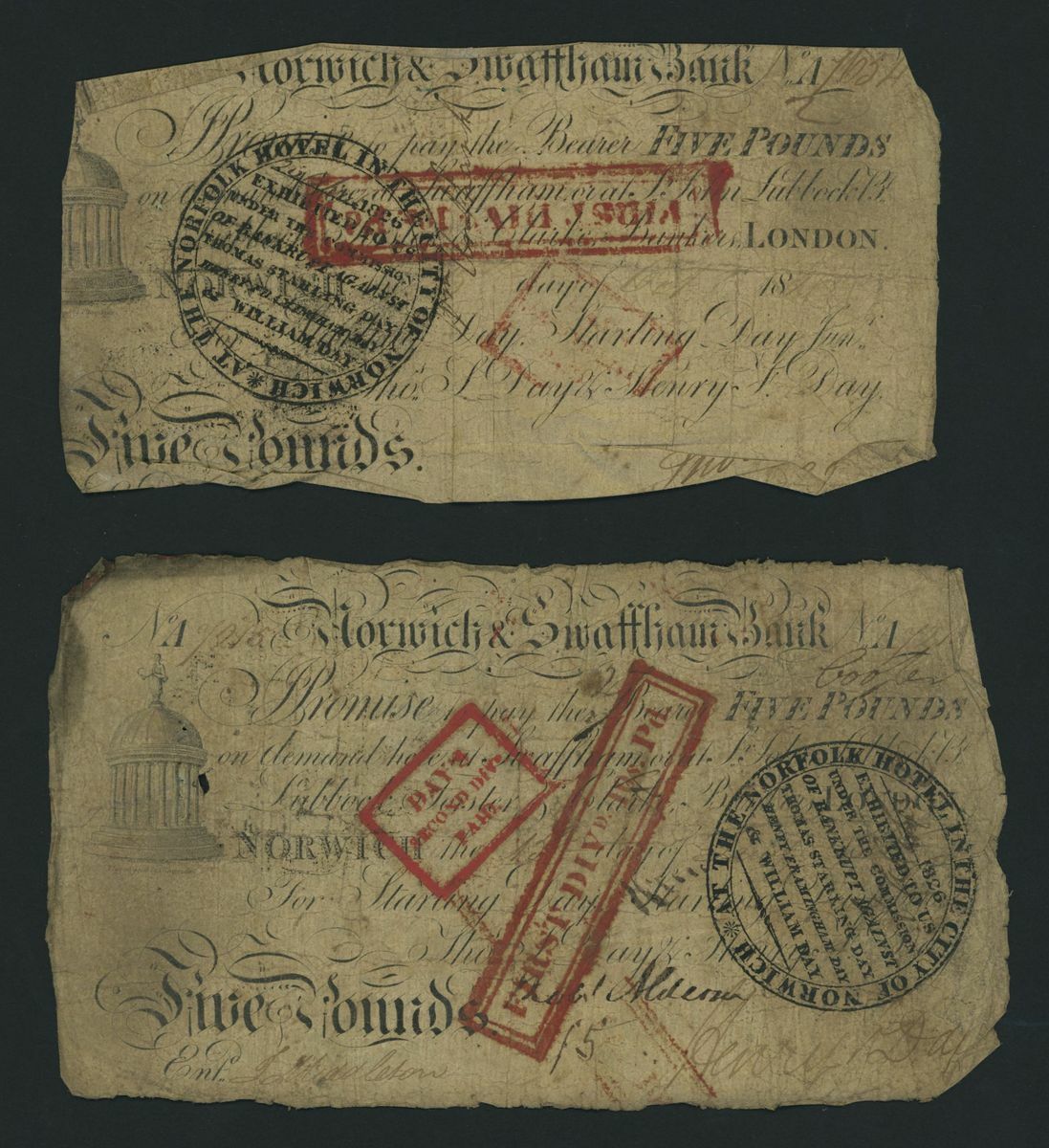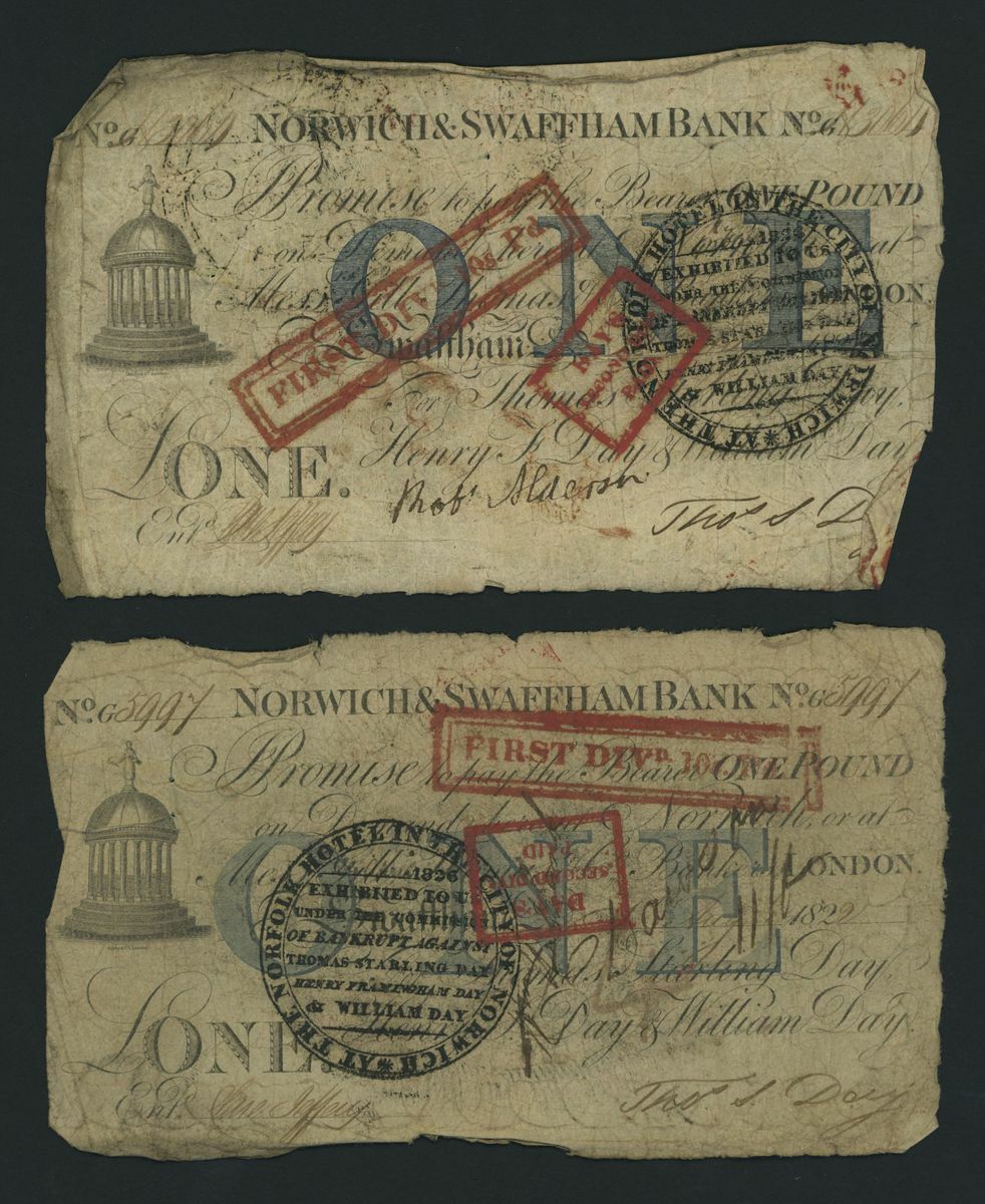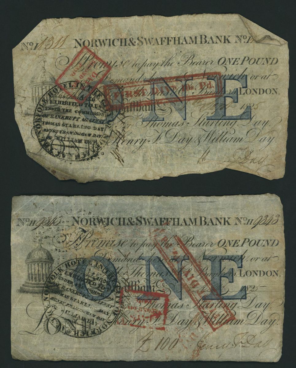 Norwich and Swaffham Bank, [15 notes] £1, £5, circa 1825, (Outing 1609i, 1609j), fair to very good, many pinholes, ink burns and discolouration (15 notes)