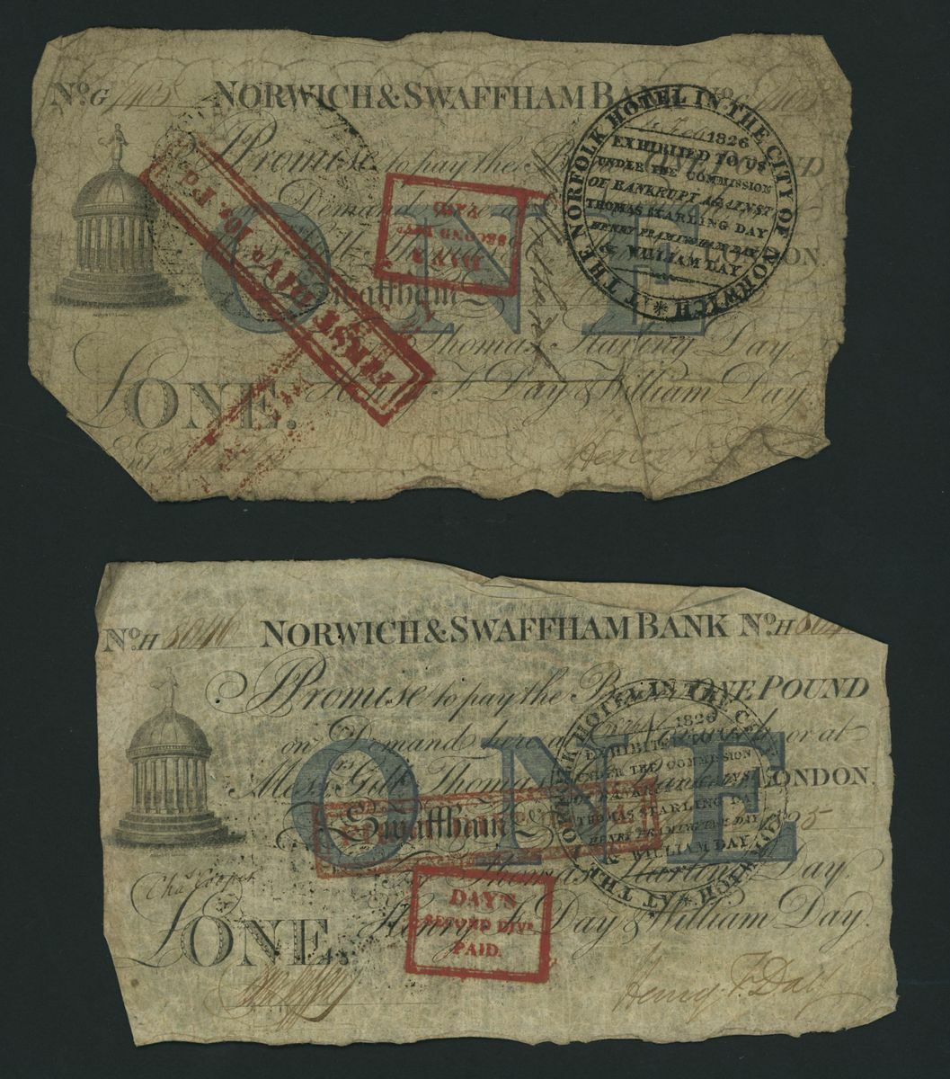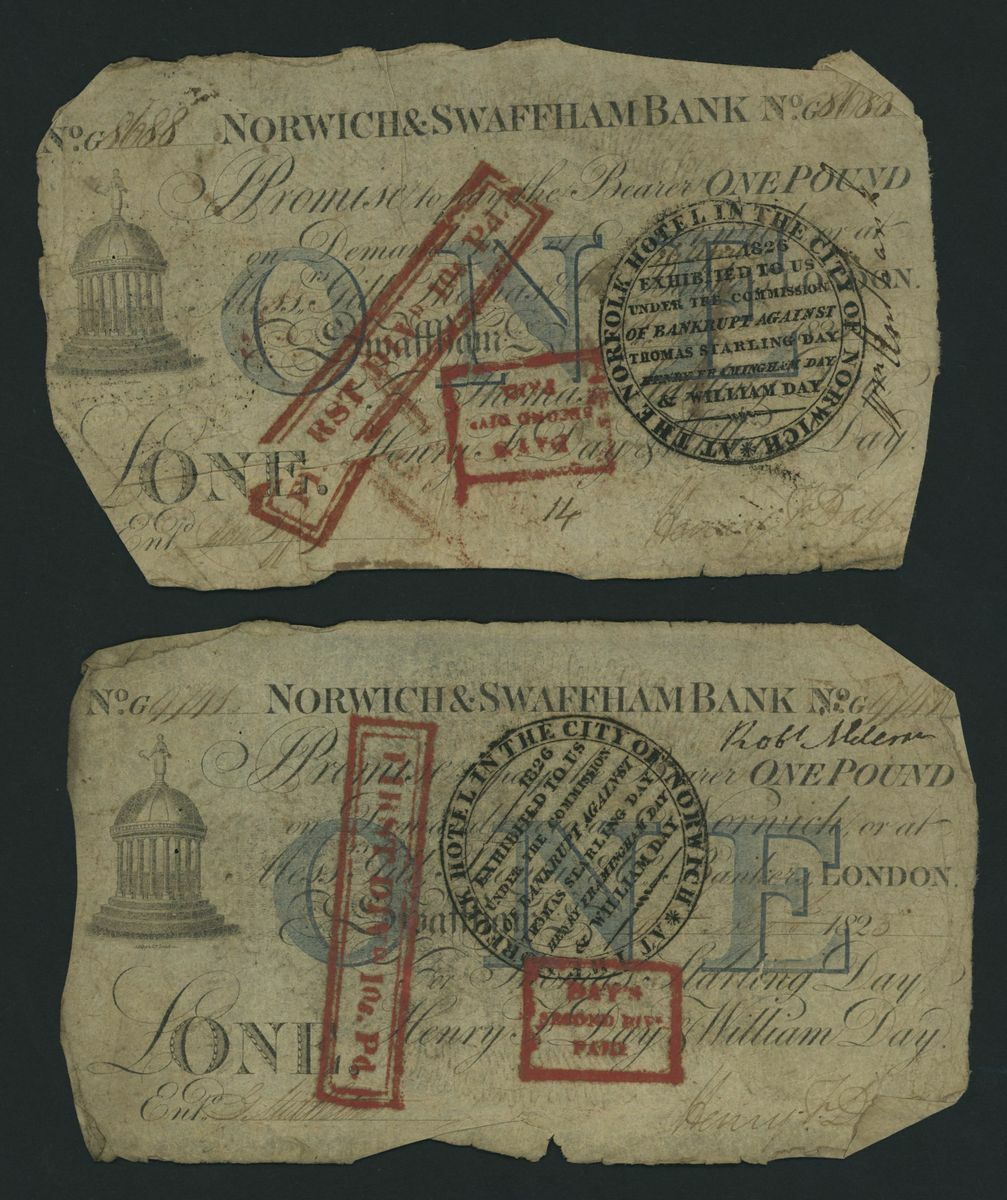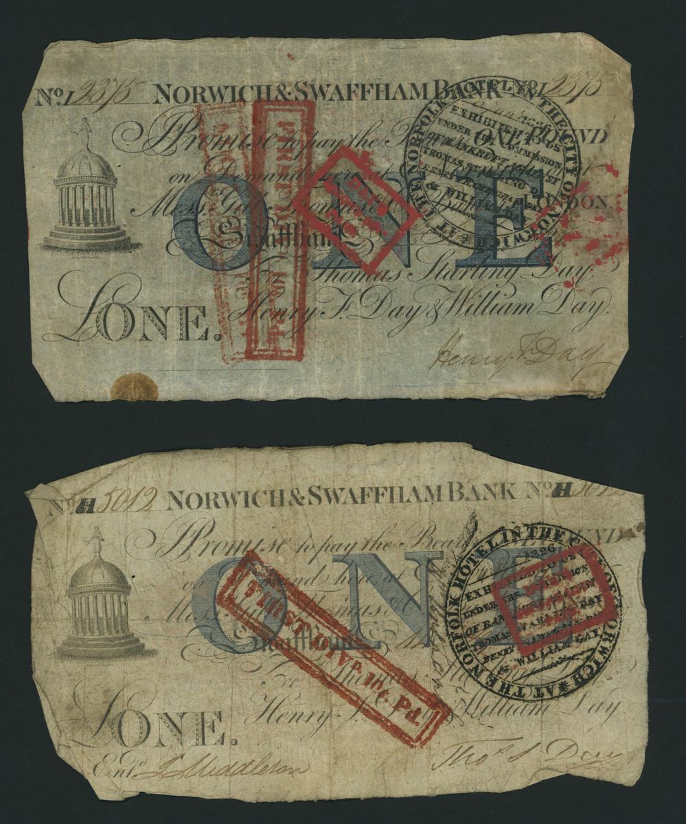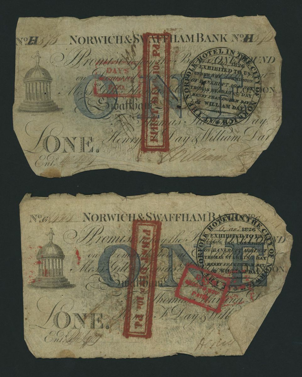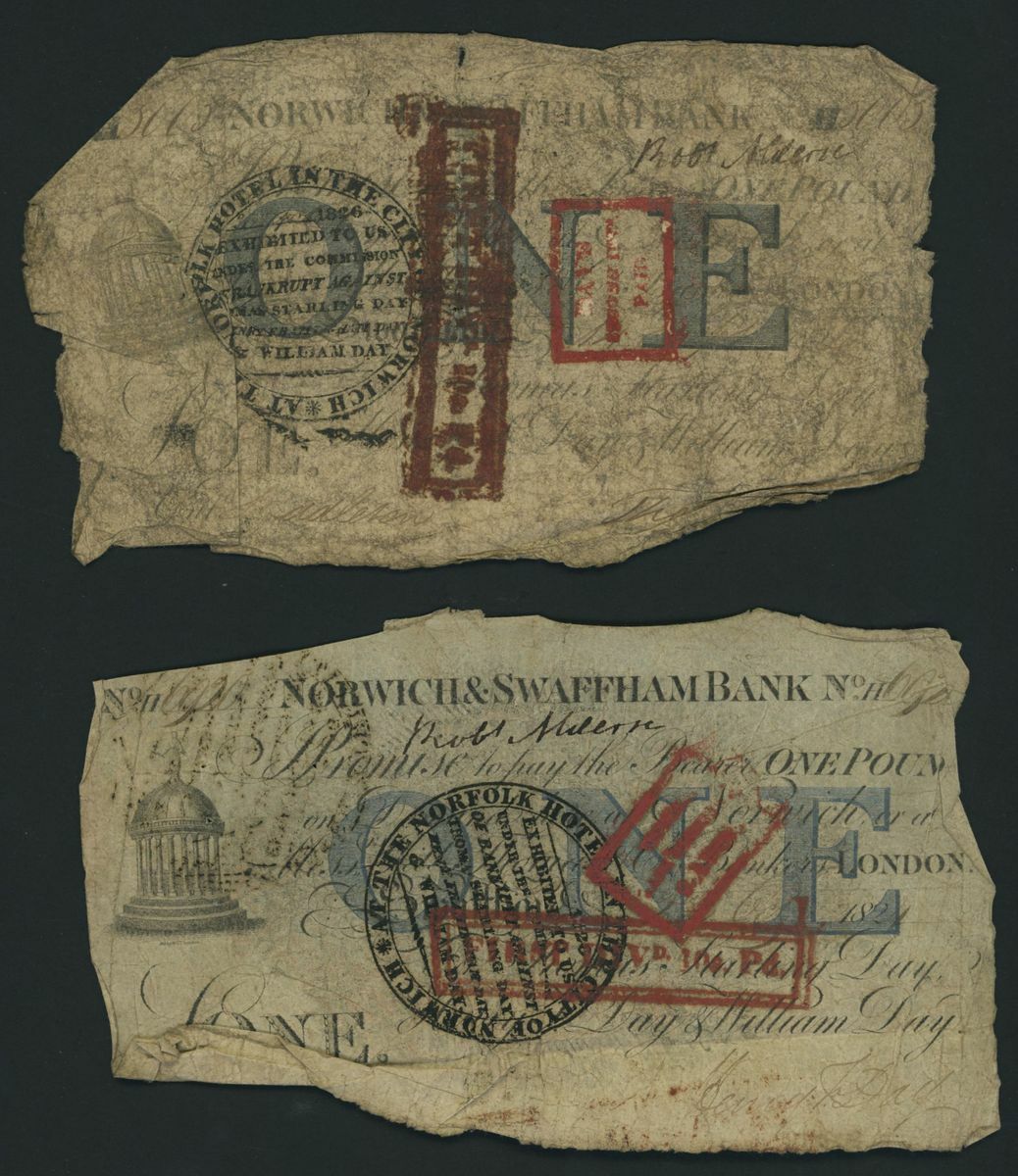 Norwich and Swaffham Bank, [20 notes] £1, circa 1825, (Outing 1609i), poor to good, many pinholes, significant rips, ink burns and discolouration (20 notes)