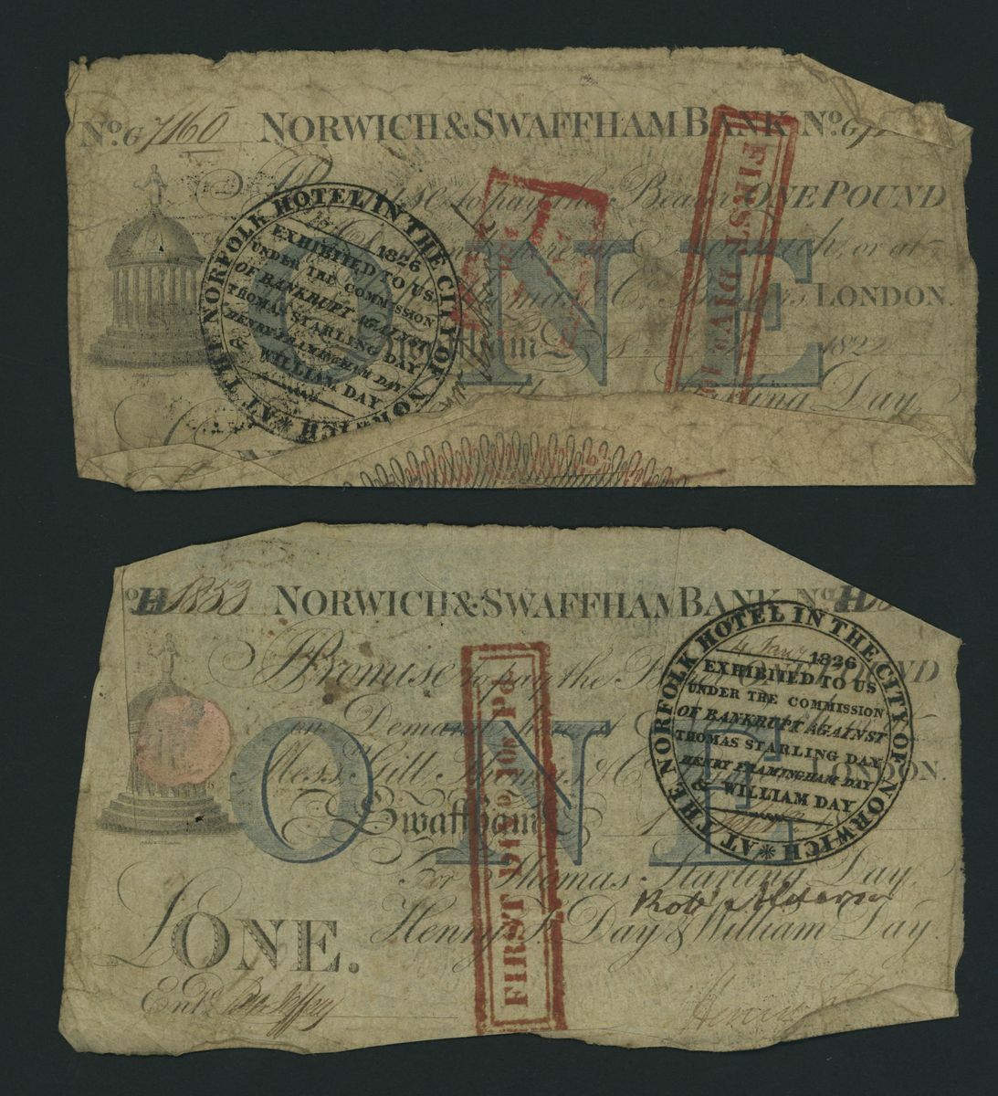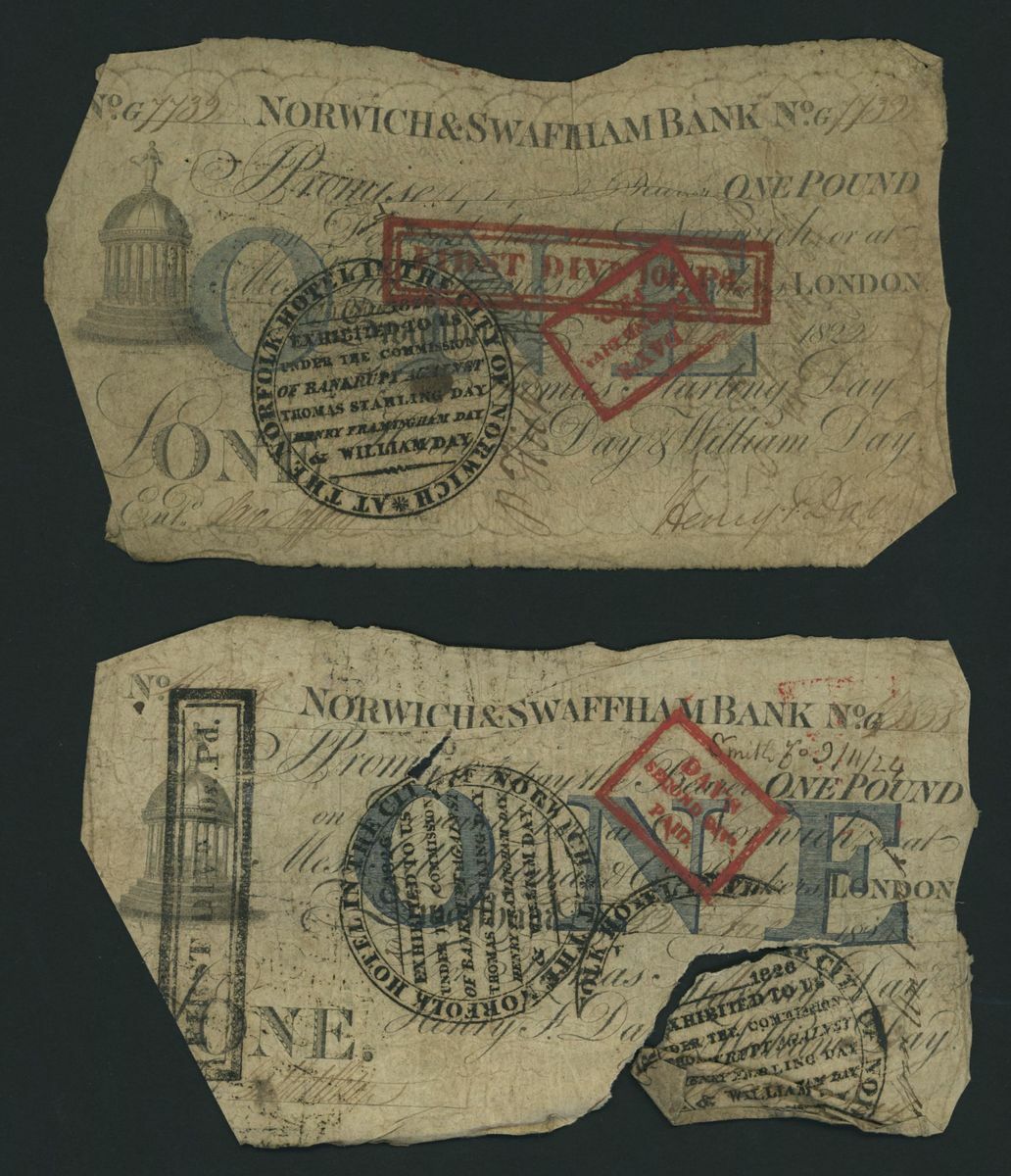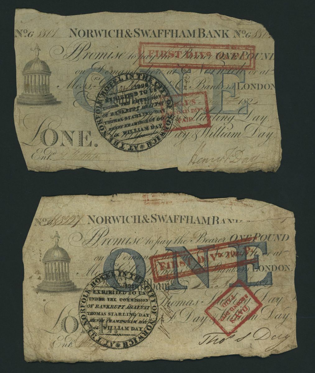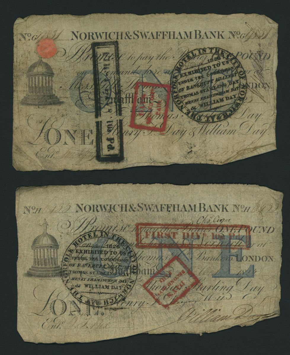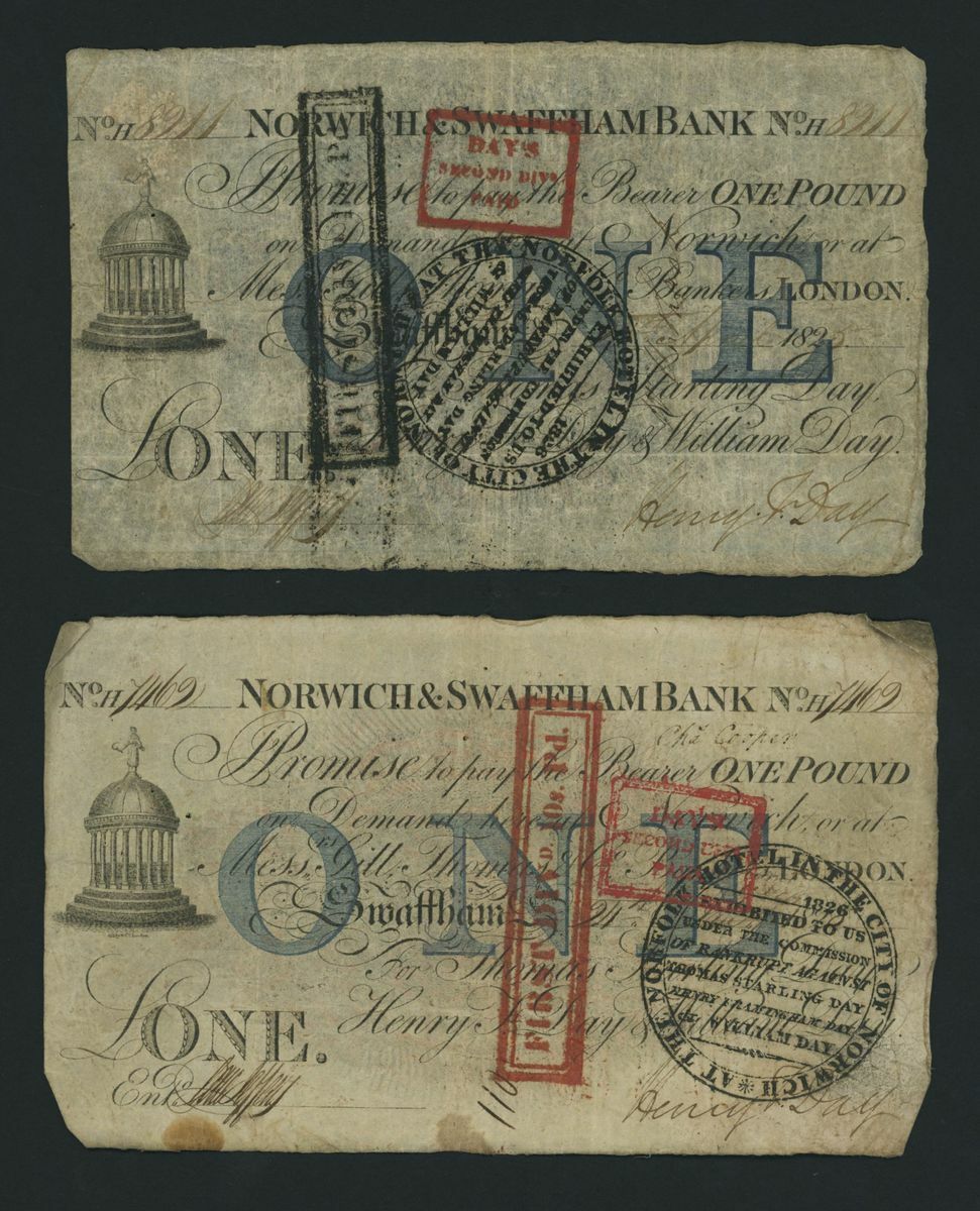 Norwich and Swaffham Bank, [20 notes] £1, circa 1825, (Outing 1609i), poor to good, many pinholes, significant rips, ink burns and discolouration (20 notes)