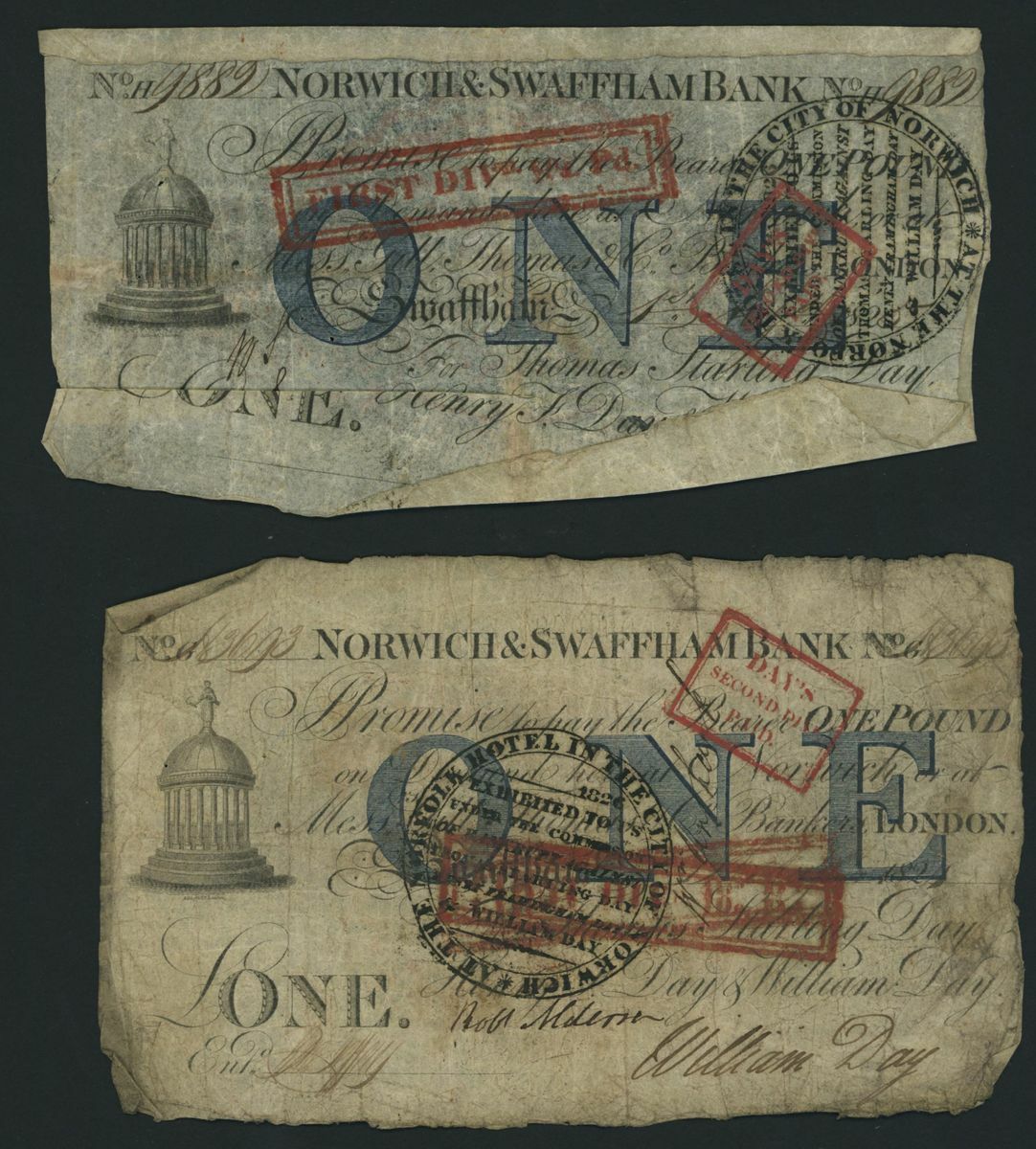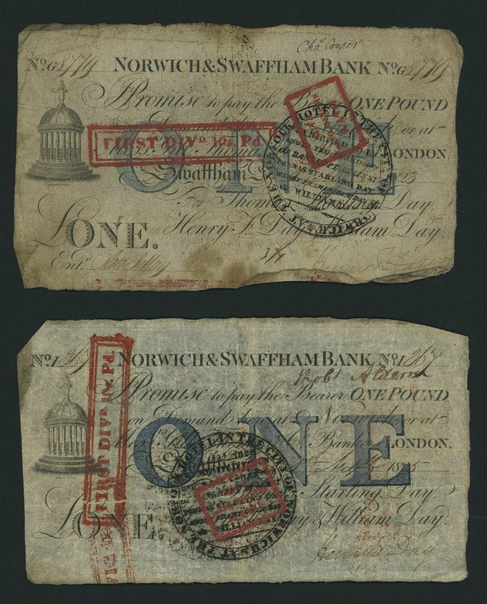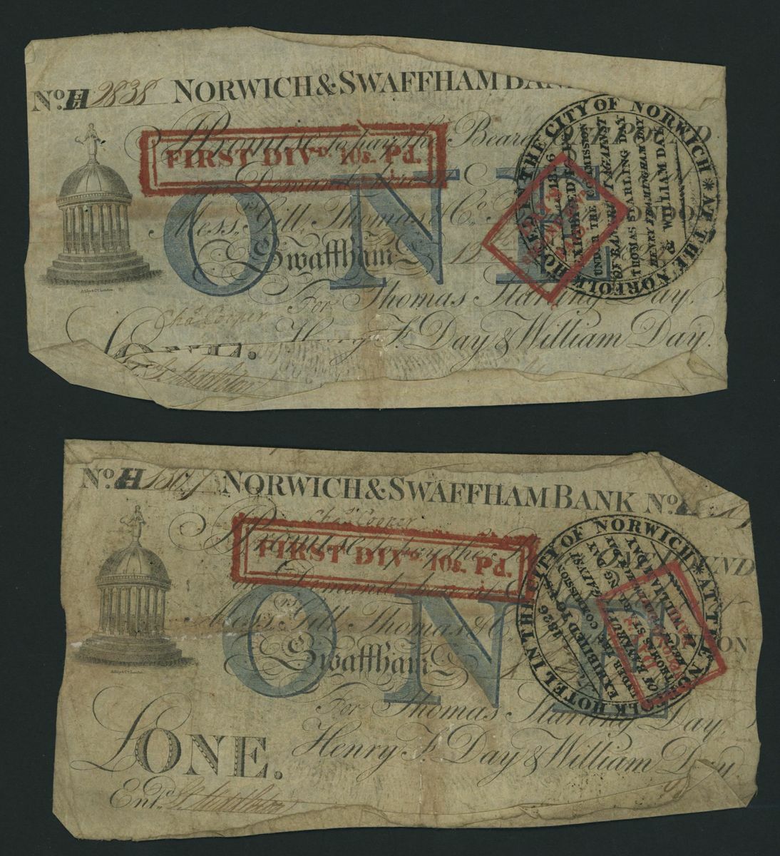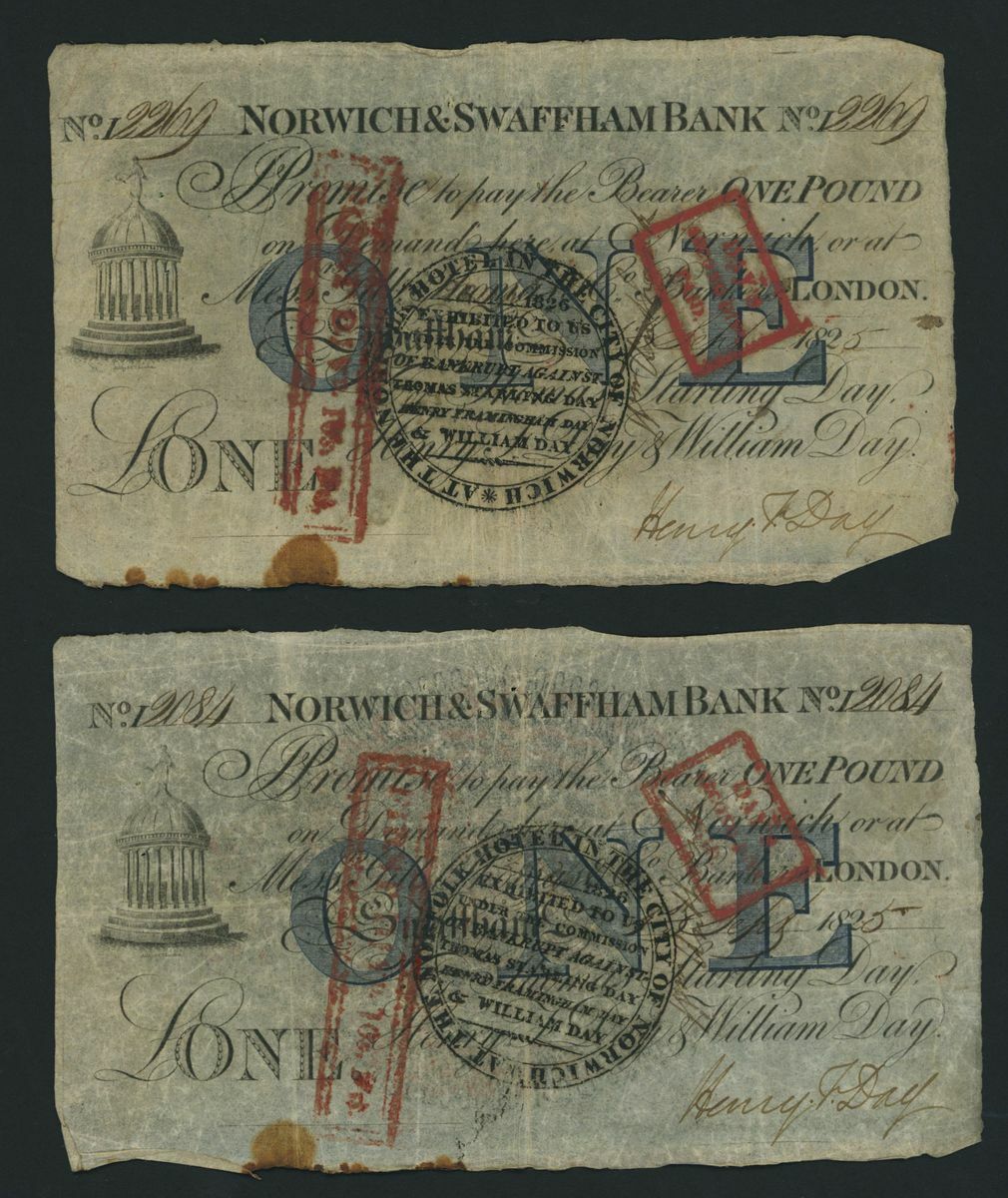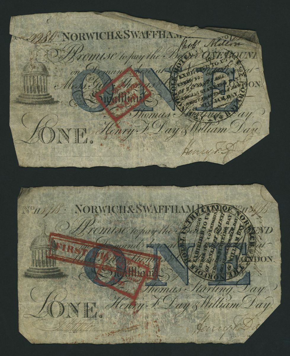 Norwich and Swaffham Bank, [20 notes] £1, circa 1825, (Outing 1609i), fair to very good, many pinholes, ink burns and discolouration (20 notes)