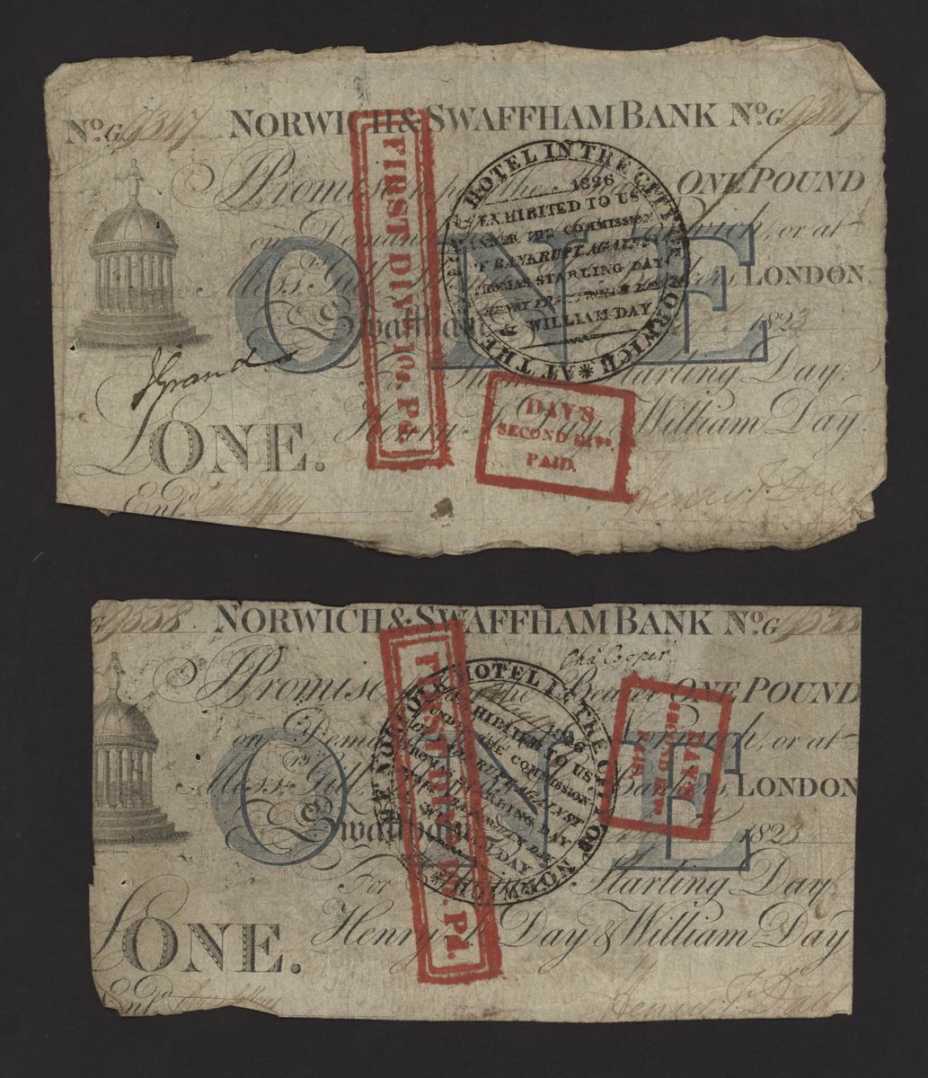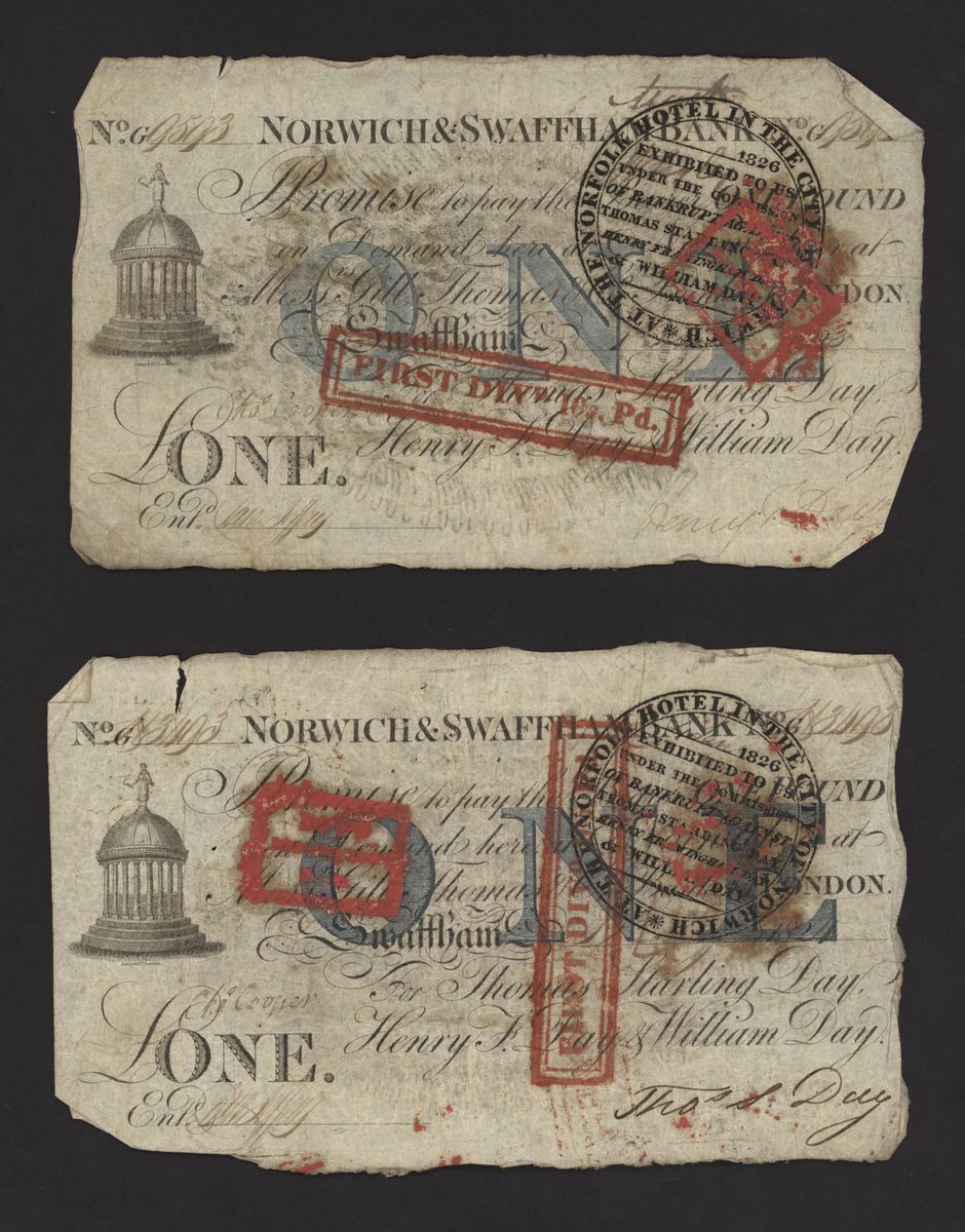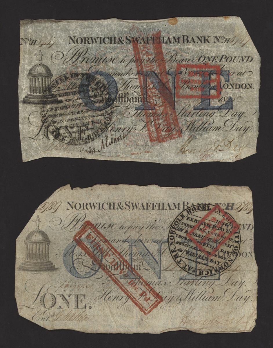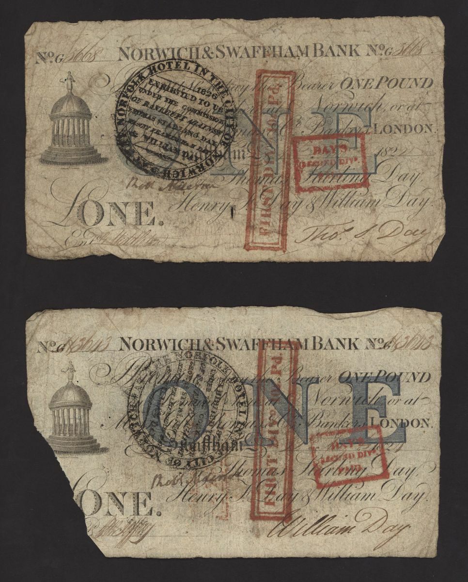 Norwich and Swaffham Bank, [24 notes] £1, circa 1825, (Outing 1609i), poor to good, many pinholes, rips, missing pieces, ink burns and discolouration (24 notes)