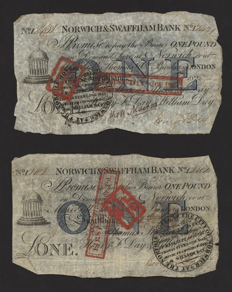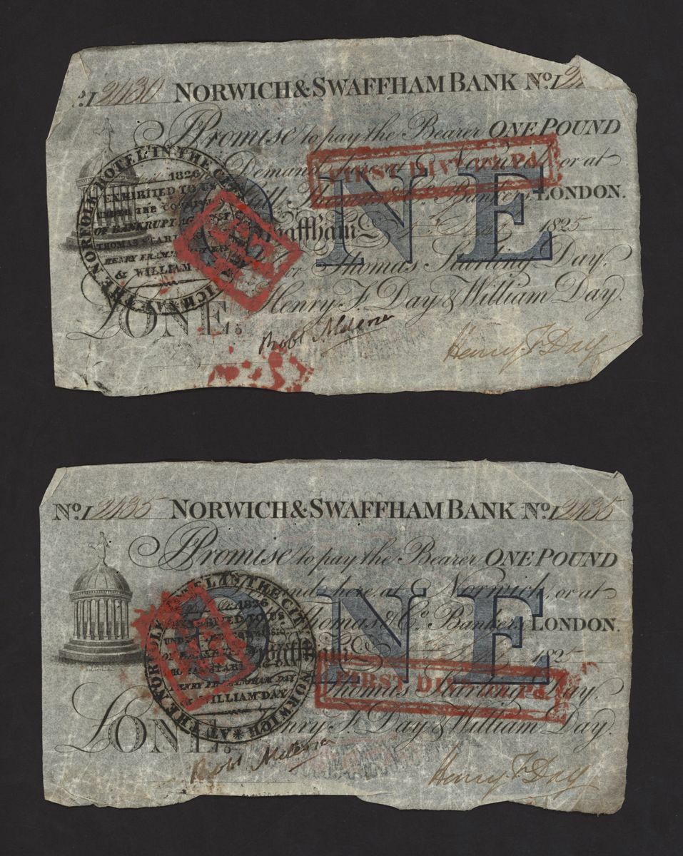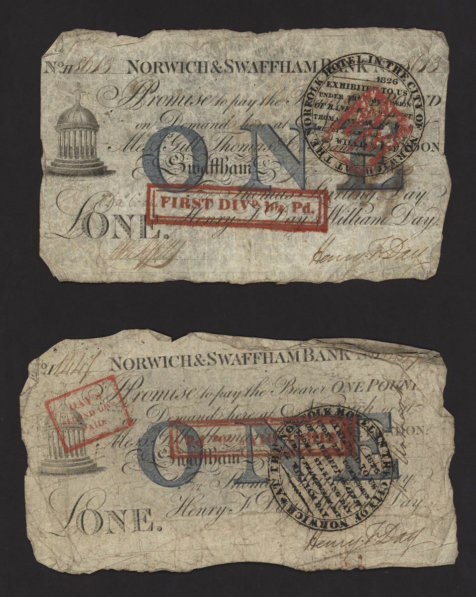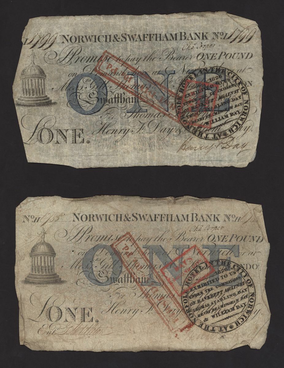 Norwich and Swaffham Bank, [24 notes] £1, circa 1825, (Outing 1609i), poor to good, many pinholes, rips, missing pieces, ink burns and discolouration (24 notes)