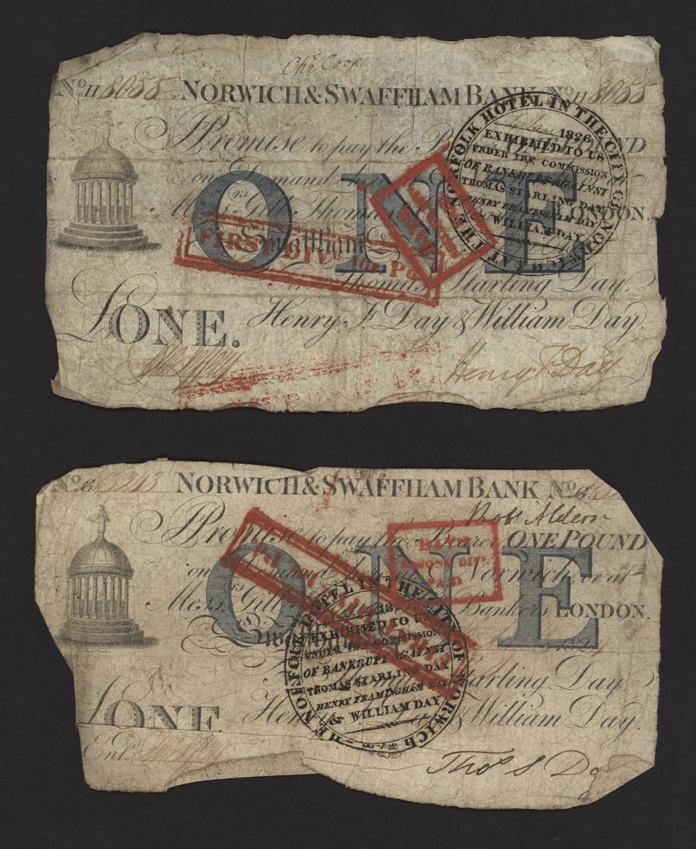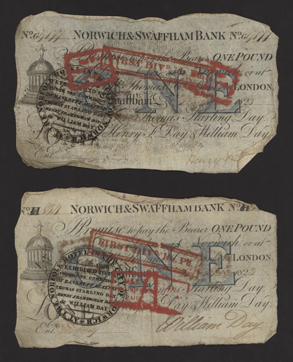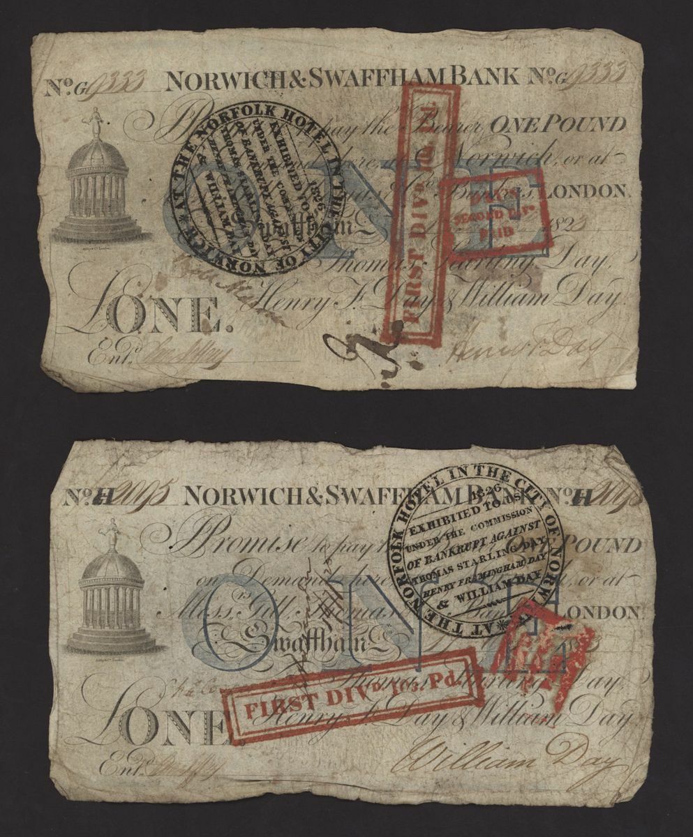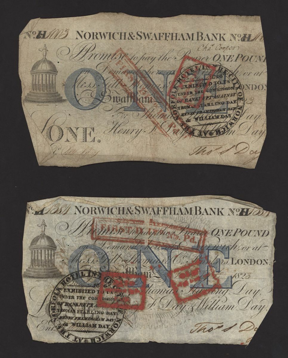 Norwich and Swaffham Bank, [24 notes] £1, circa 1825, (Outing 1609i), poor to good, many pinholes, rips, missing pieces, ink burns and discolouration (24 notes)