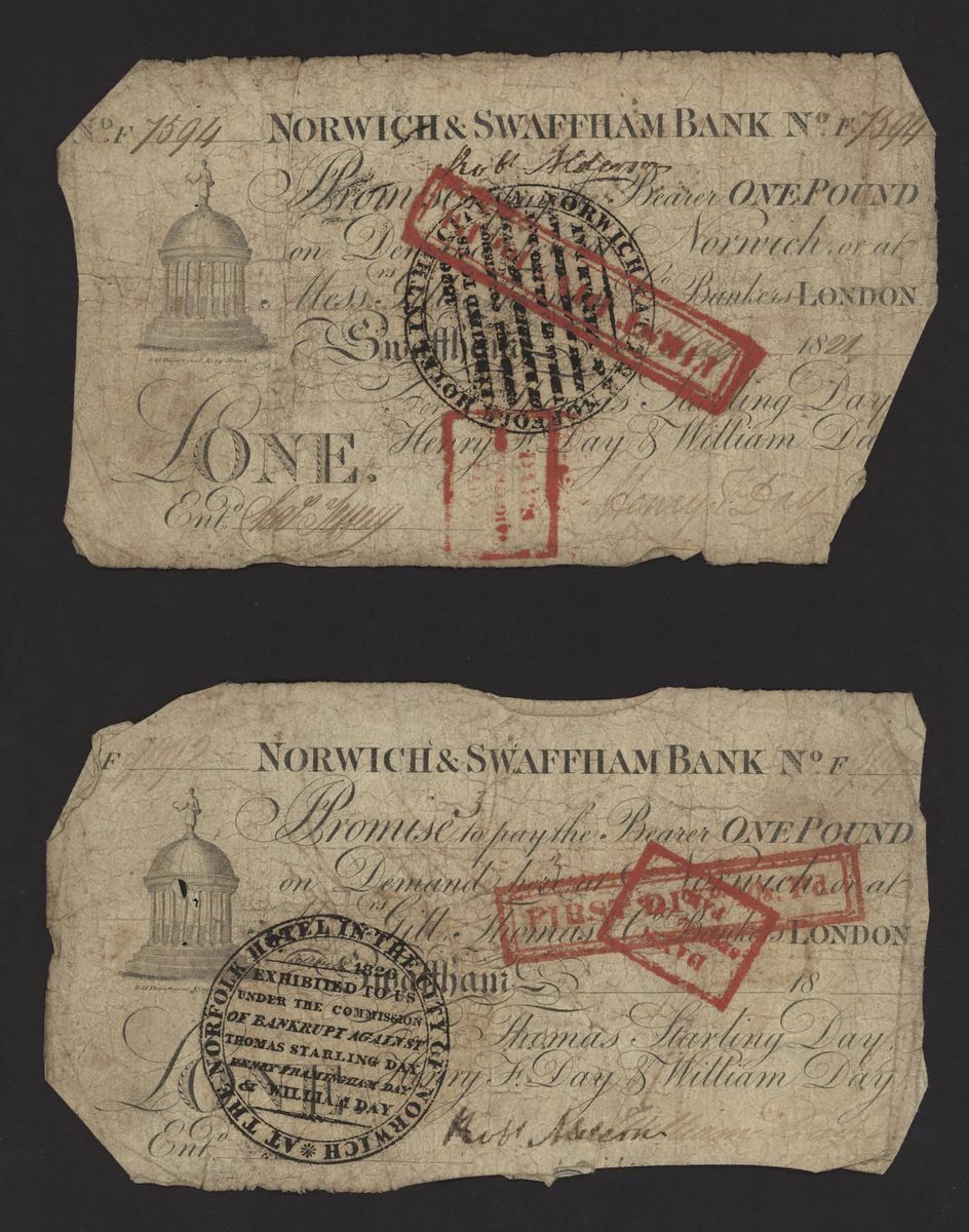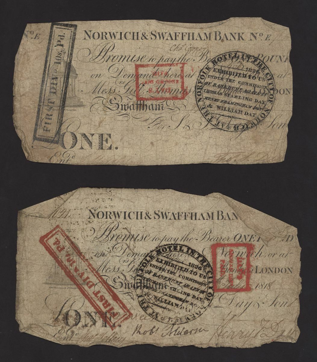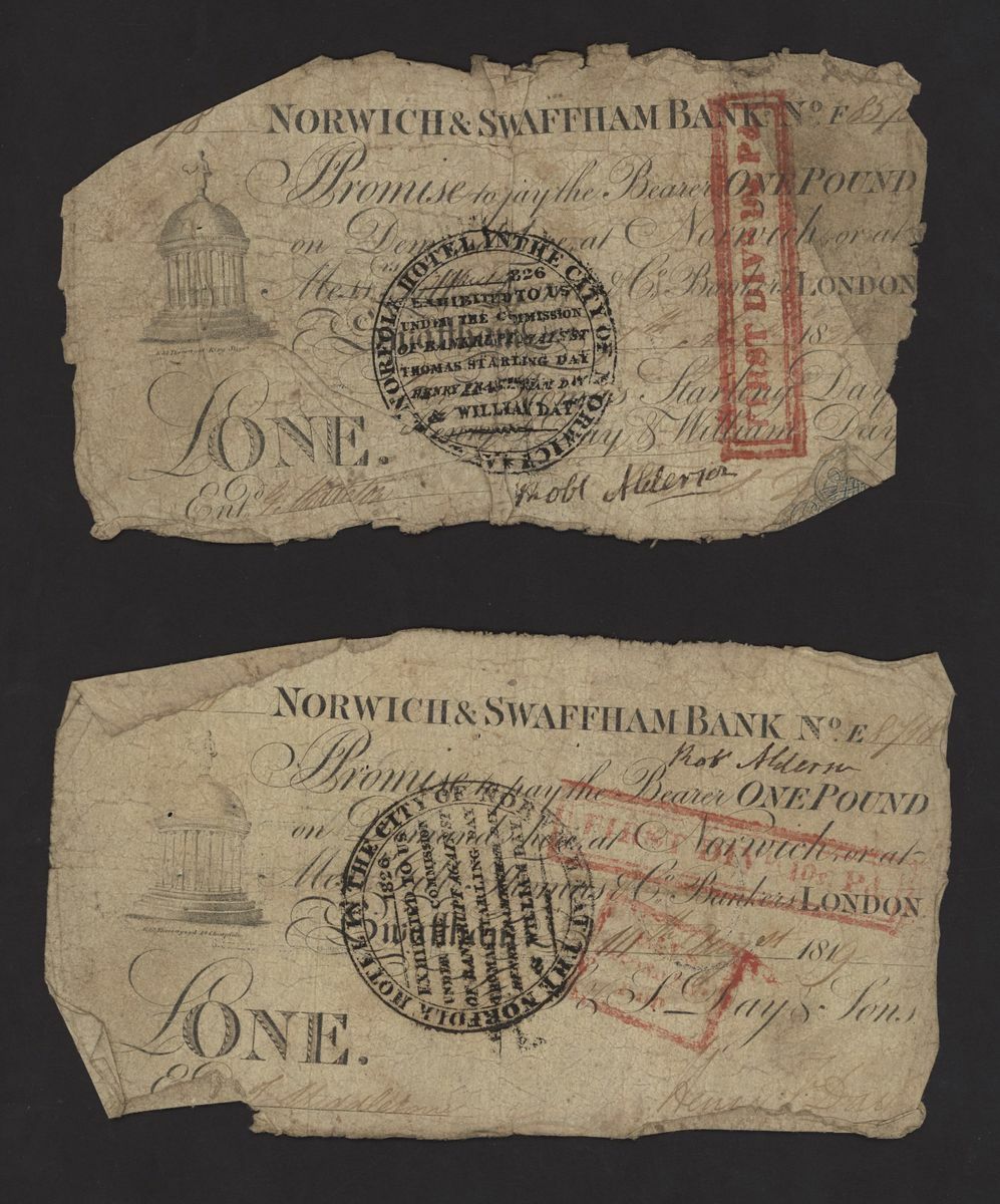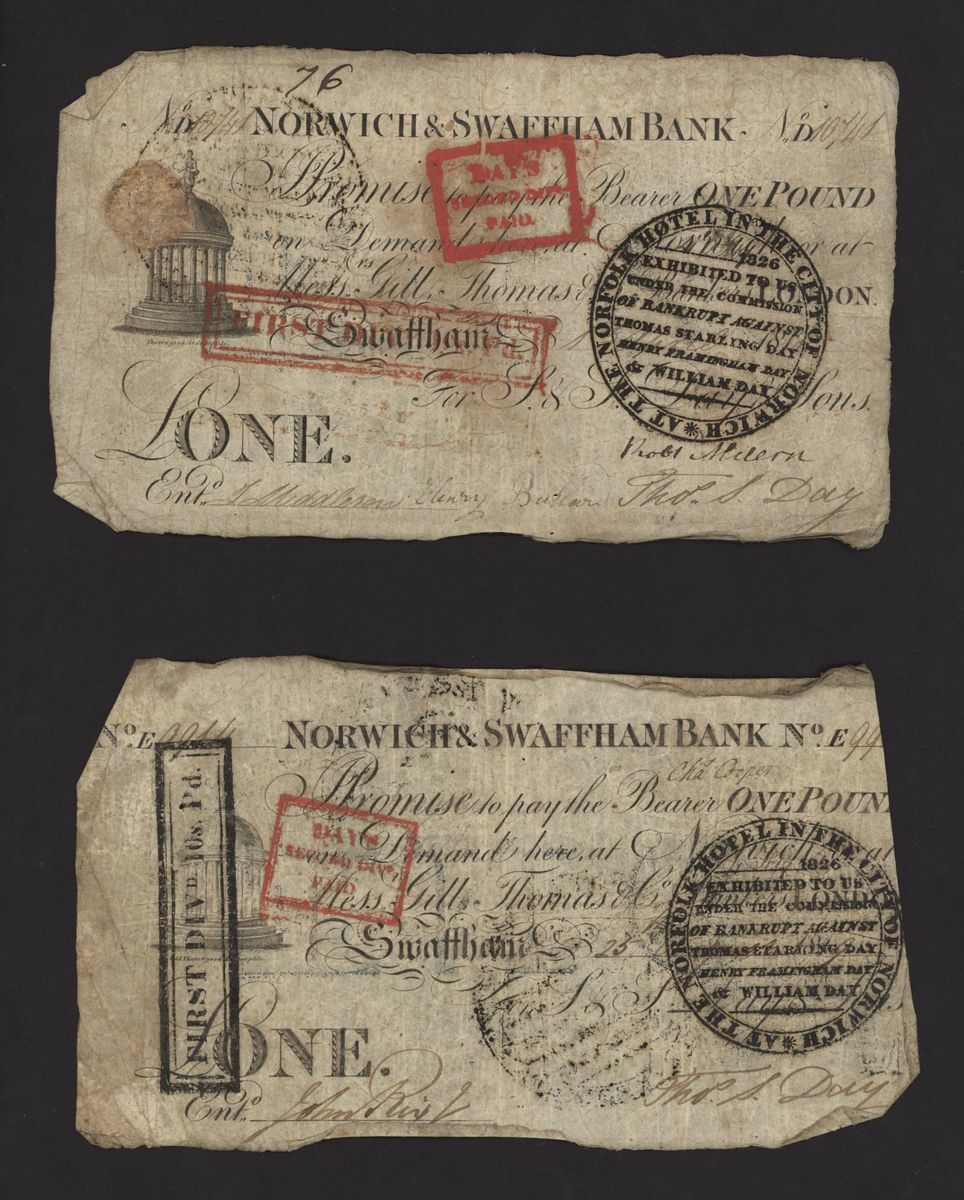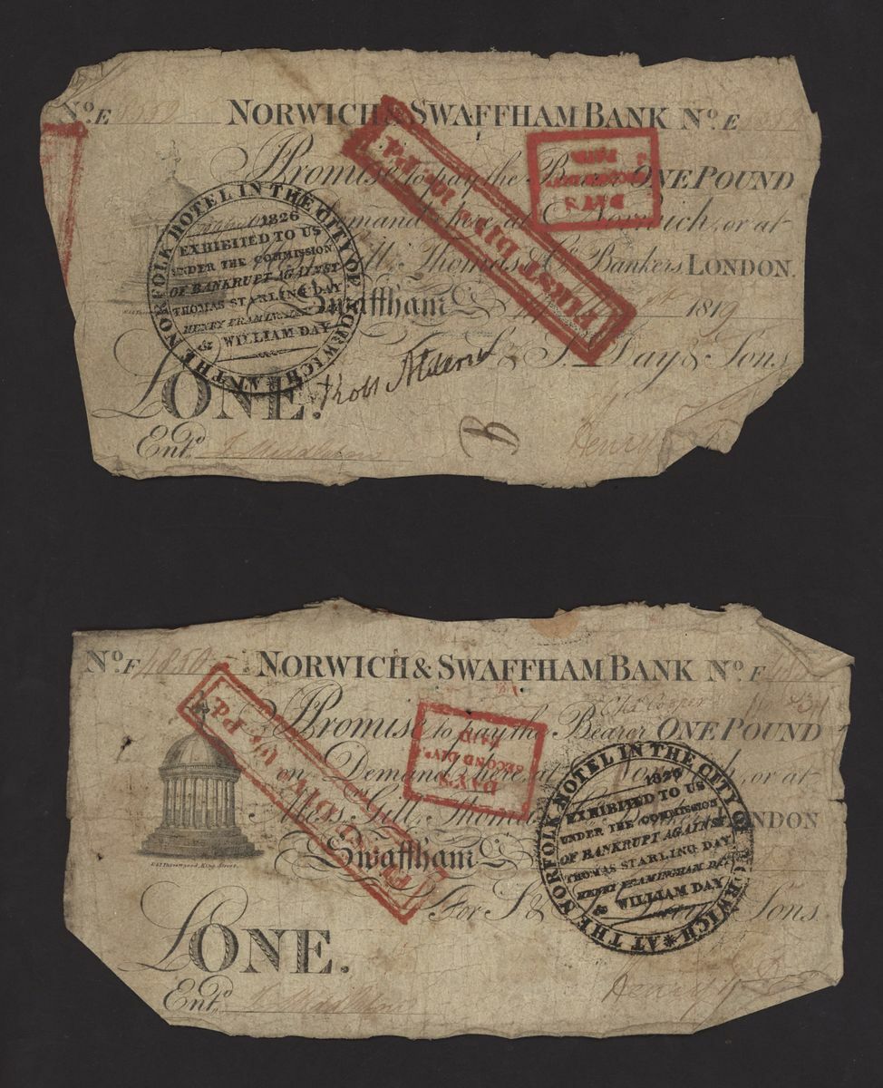 Norwich and Swaffham Bank, [23 notes] £1, circa 1825, blue 'ONE' one reverse of these notes