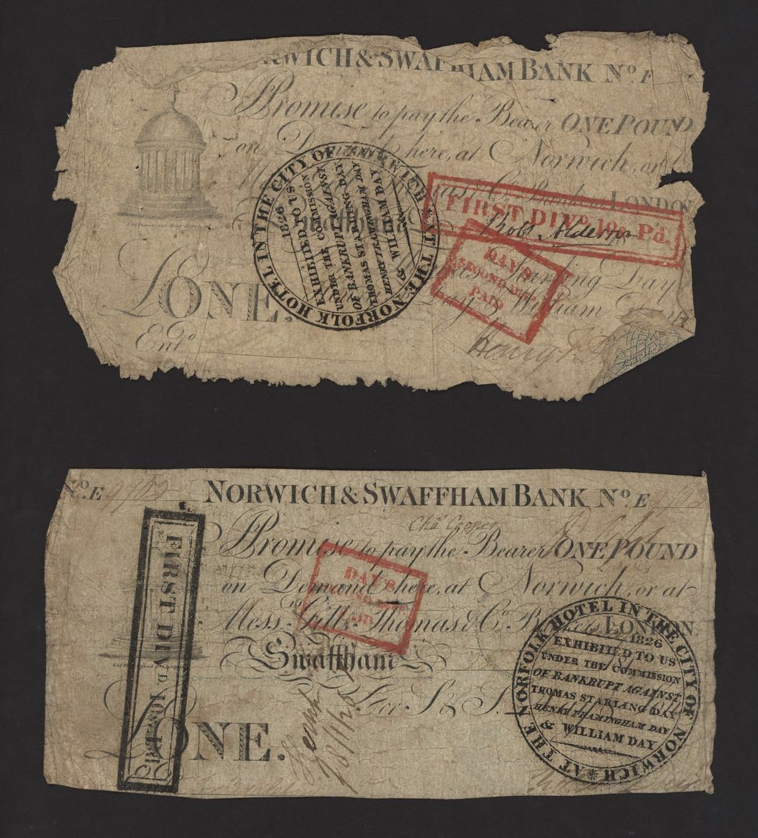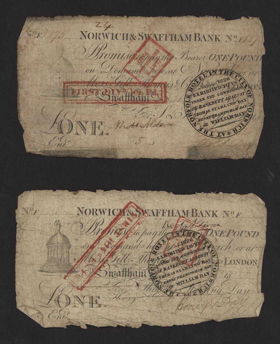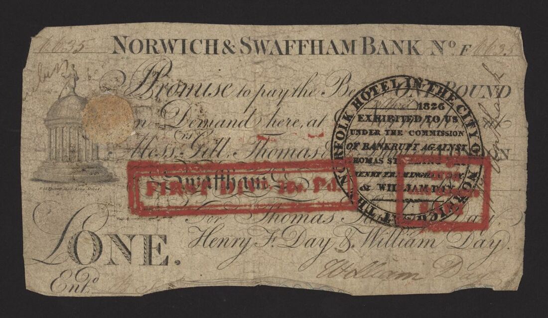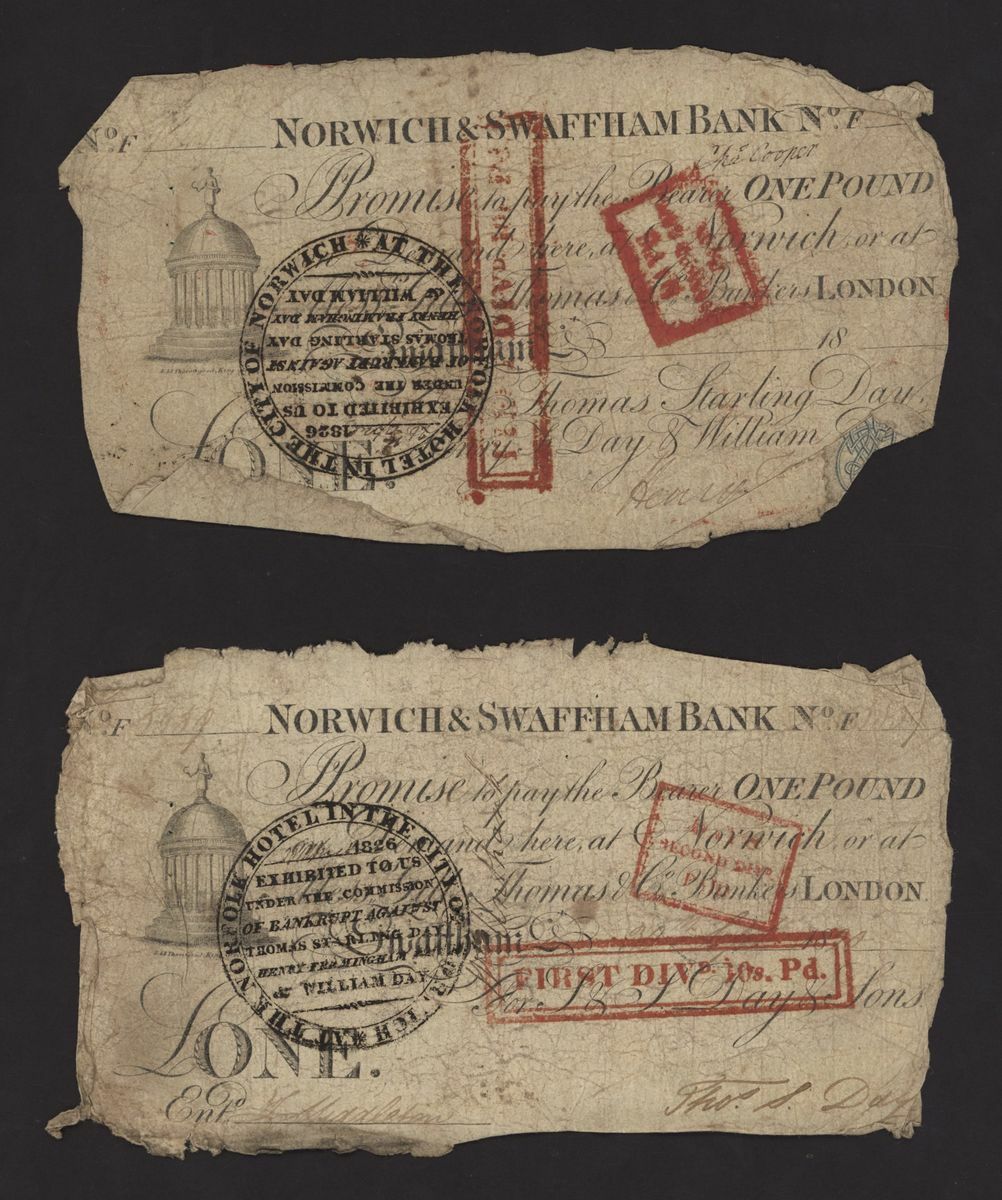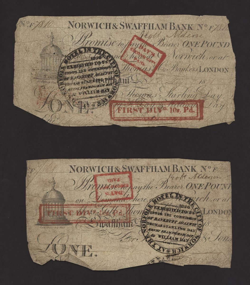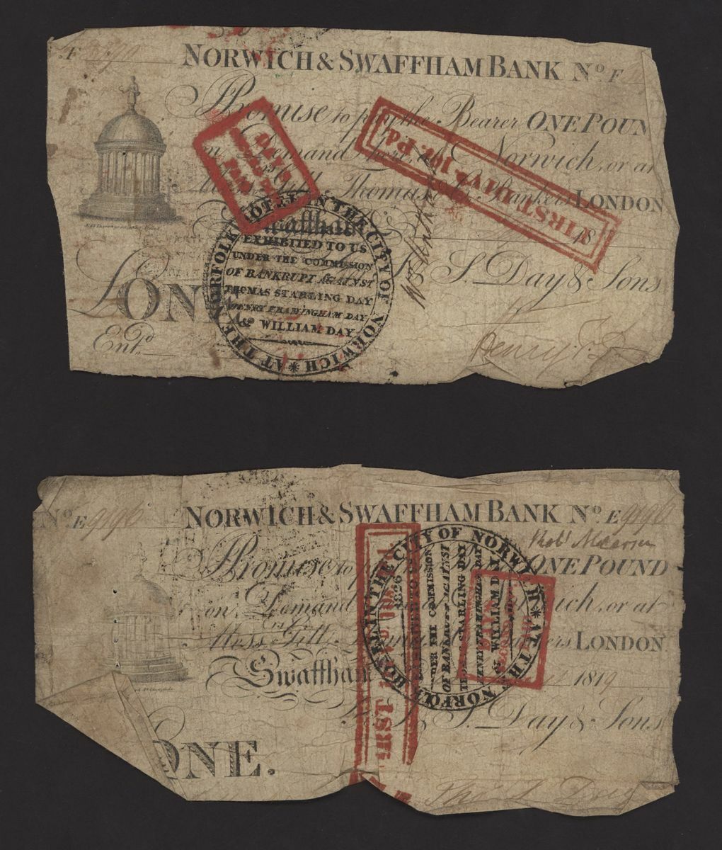 Norwich and Swaffham Bank, [23 notes] £1, circa 1825, blue 'ONE' one reverse of these notes