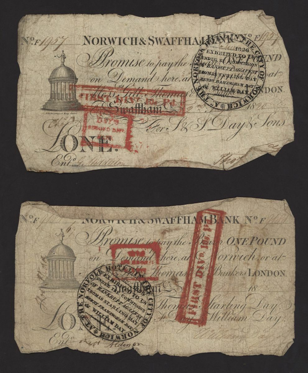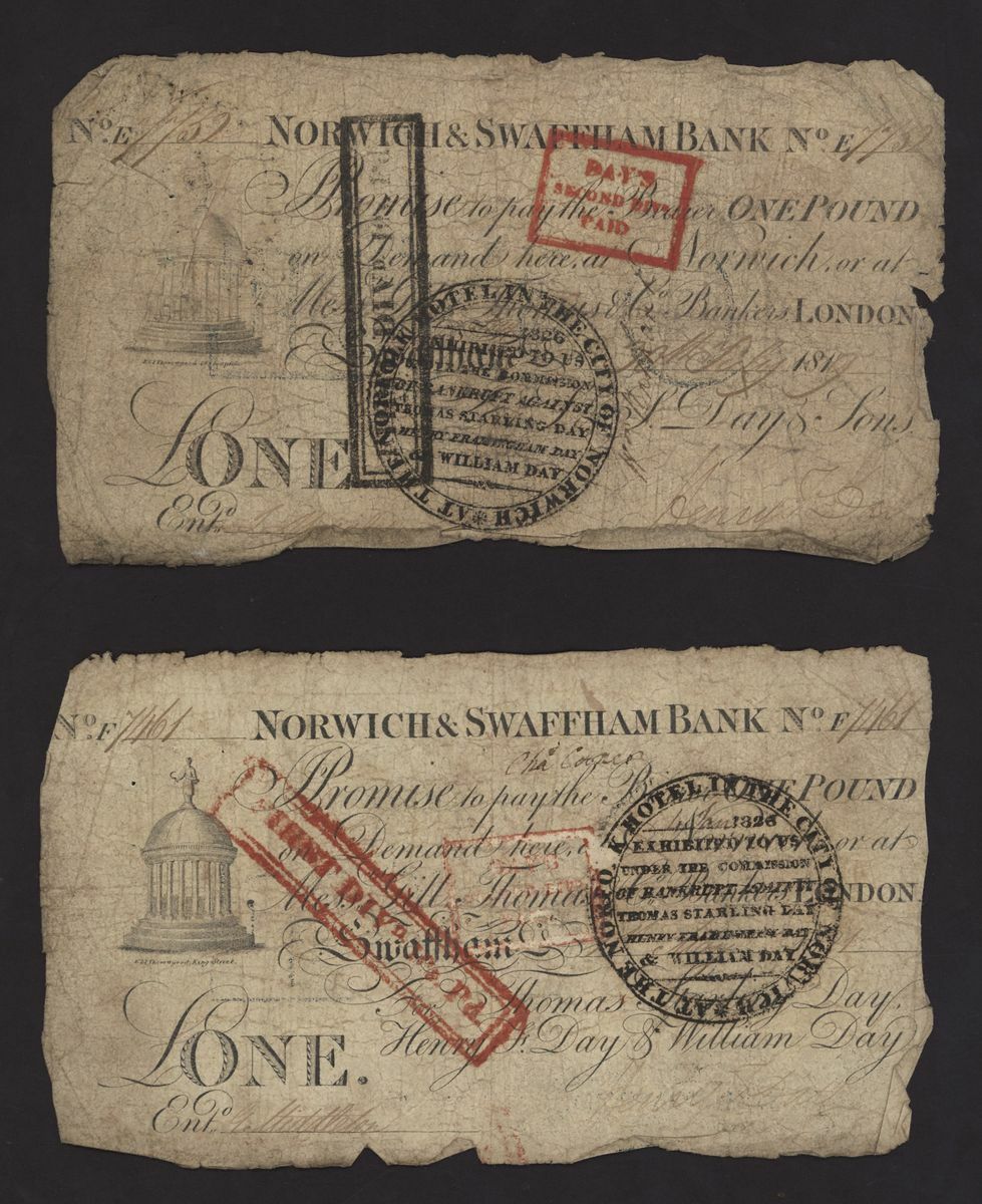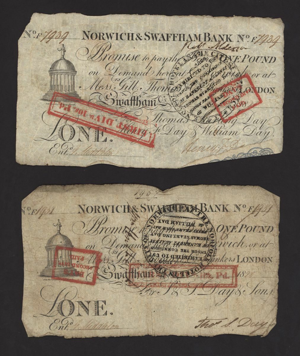 Norwich and Swaffham Bank, [22 notes] £1, circa 1825, blue 'ONE' one reverse of these notes