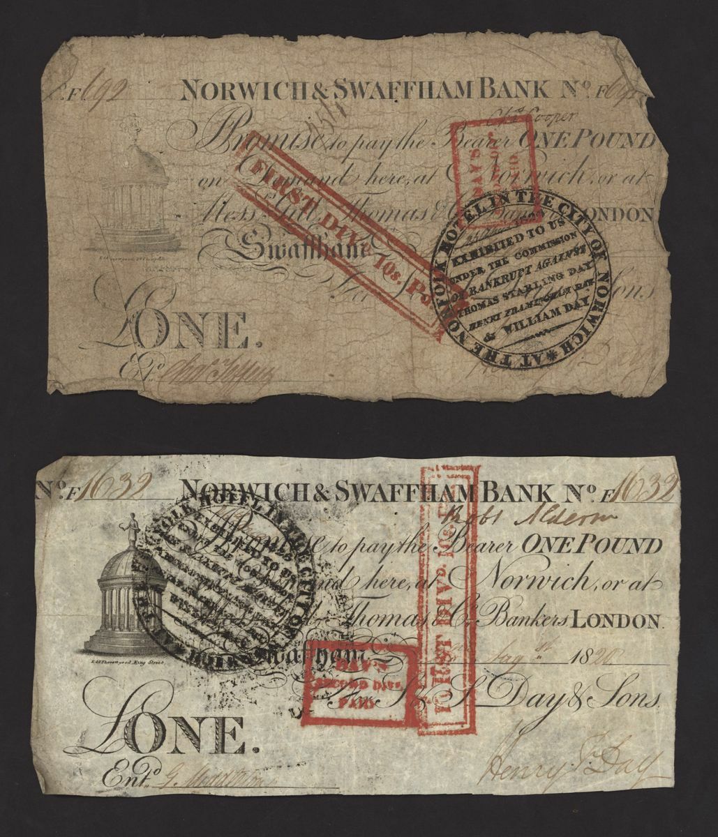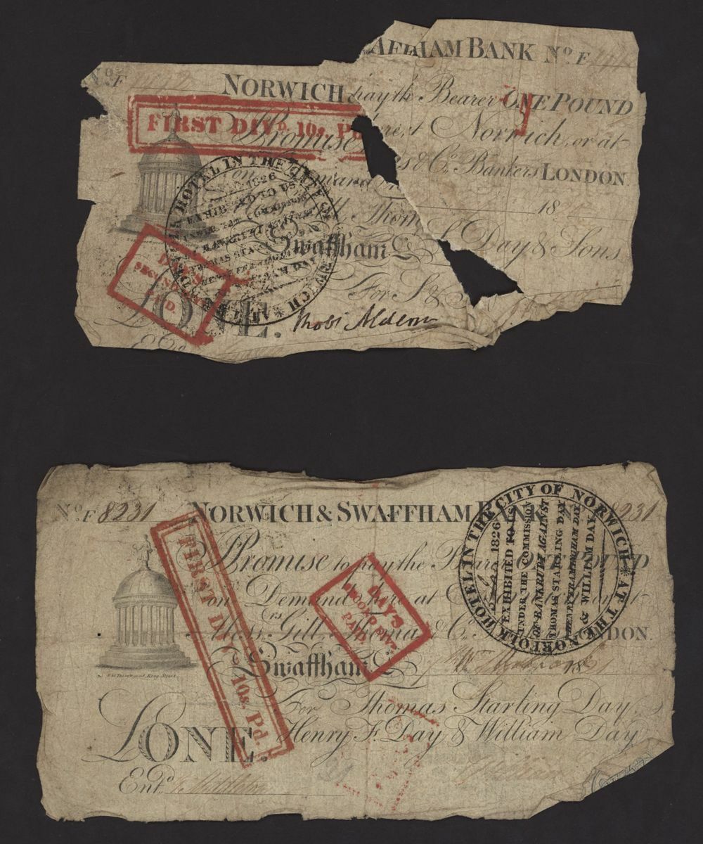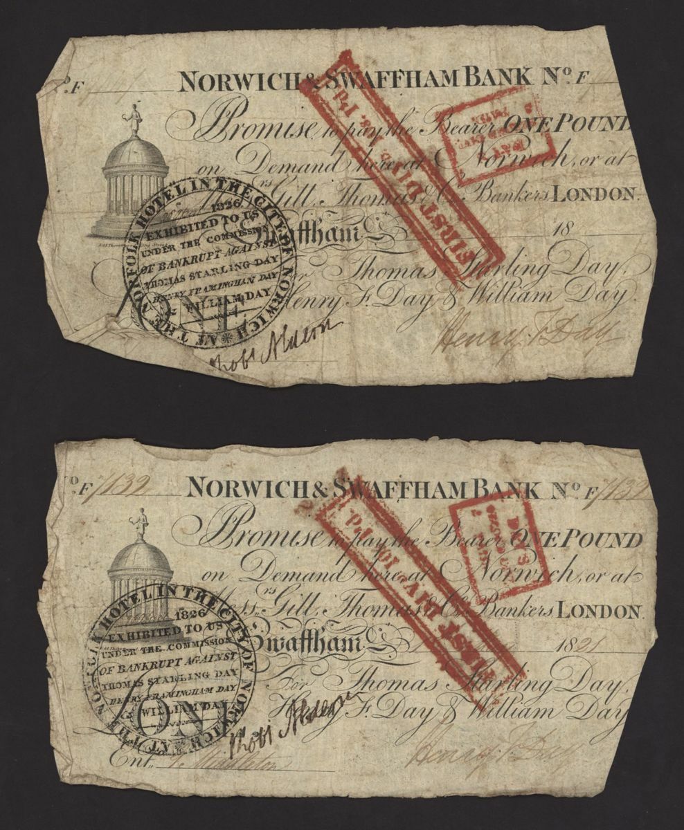 Norwich and Swaffham Bank, [22 notes] £1, circa 1825, blue 'ONE' one reverse of these notes