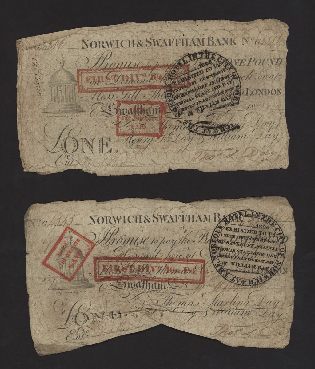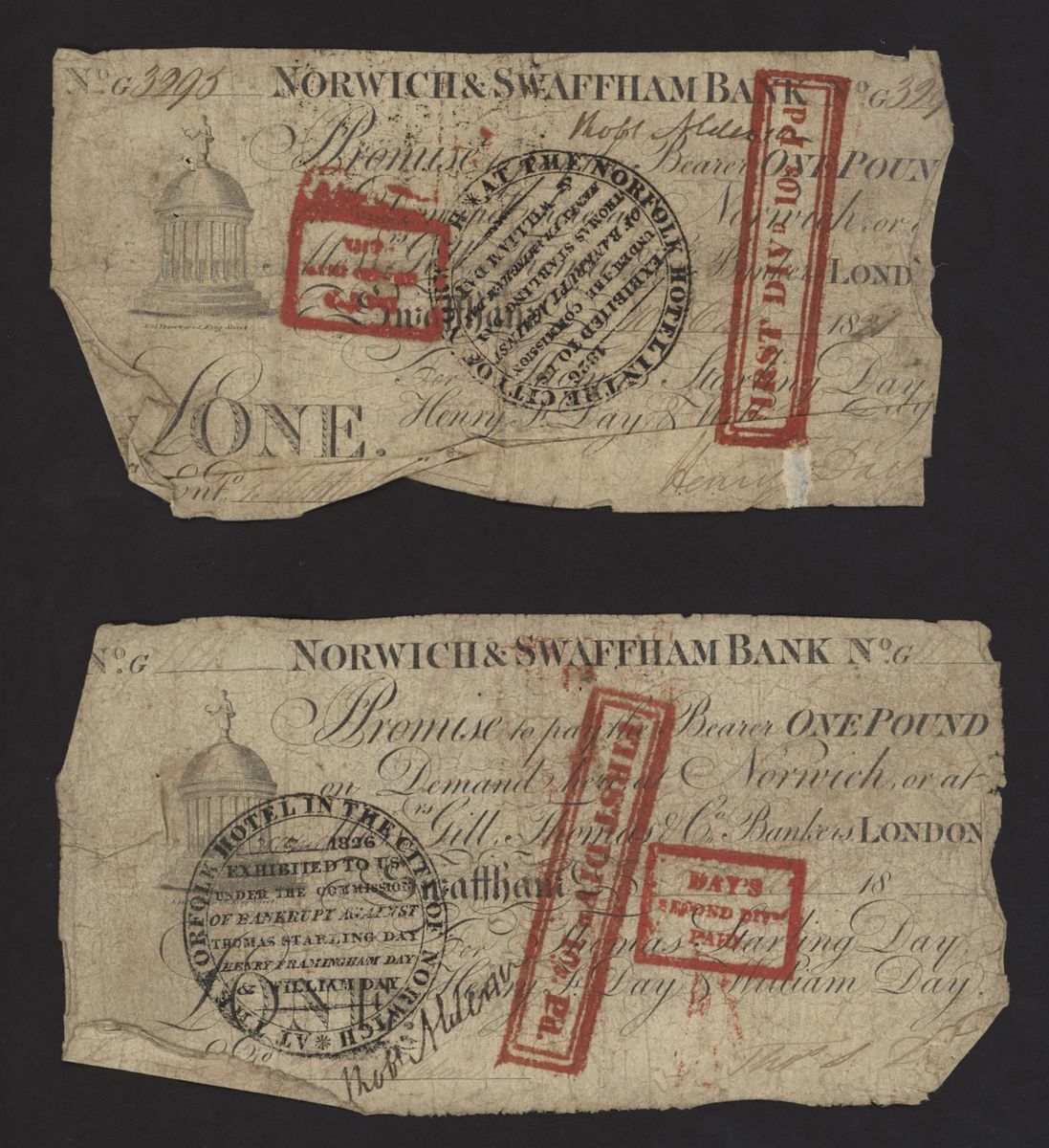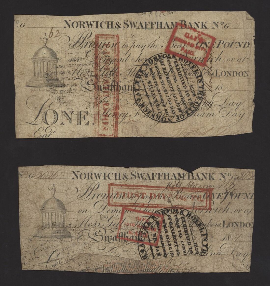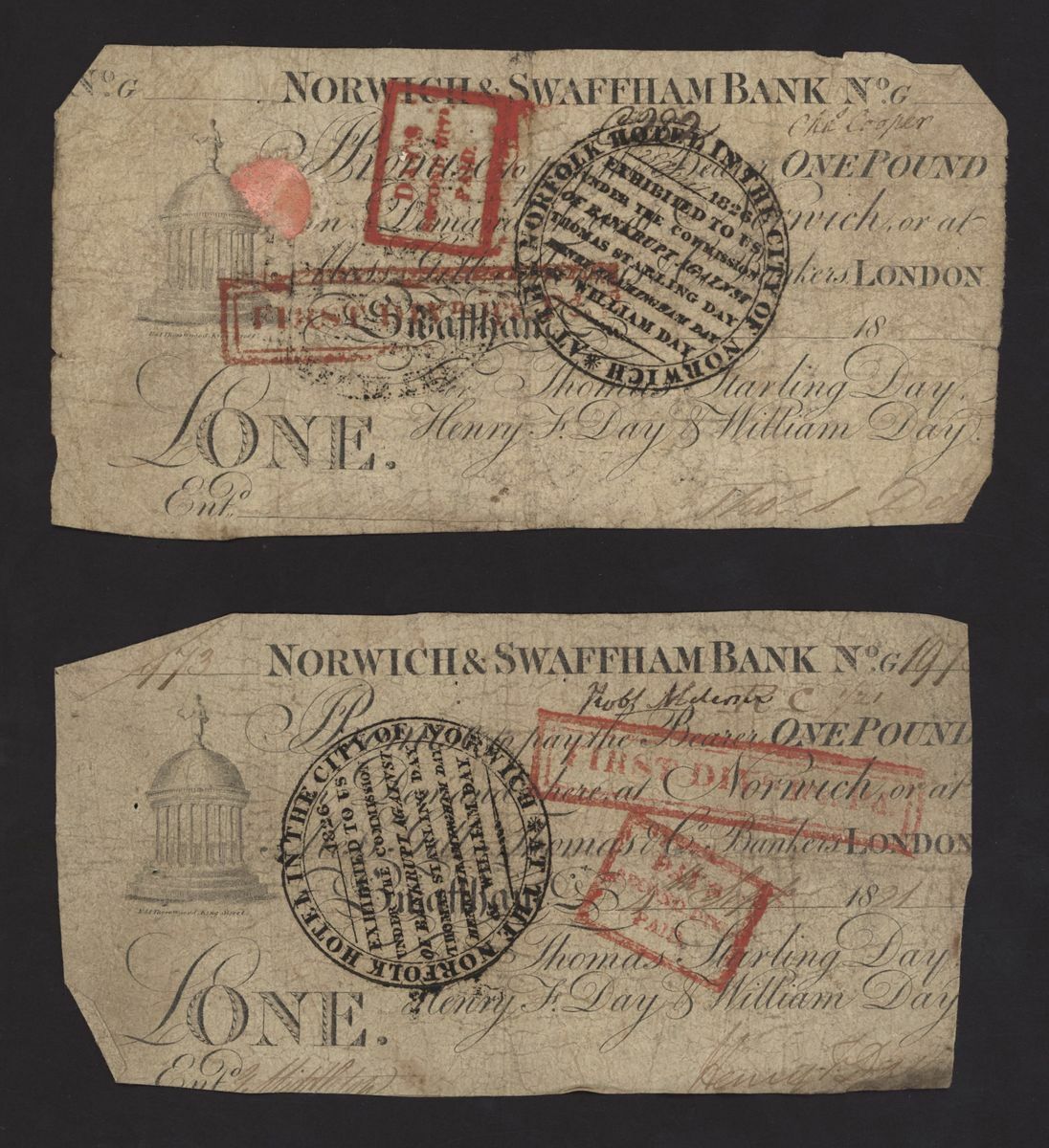 Norwich and Swaffham Bank, [18 notes] £1, circa 1825, (Outing 1609h), poor to good, many pinholes, missing pieces, ink burns and discolouration (18 notes)