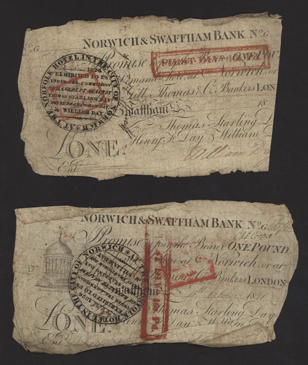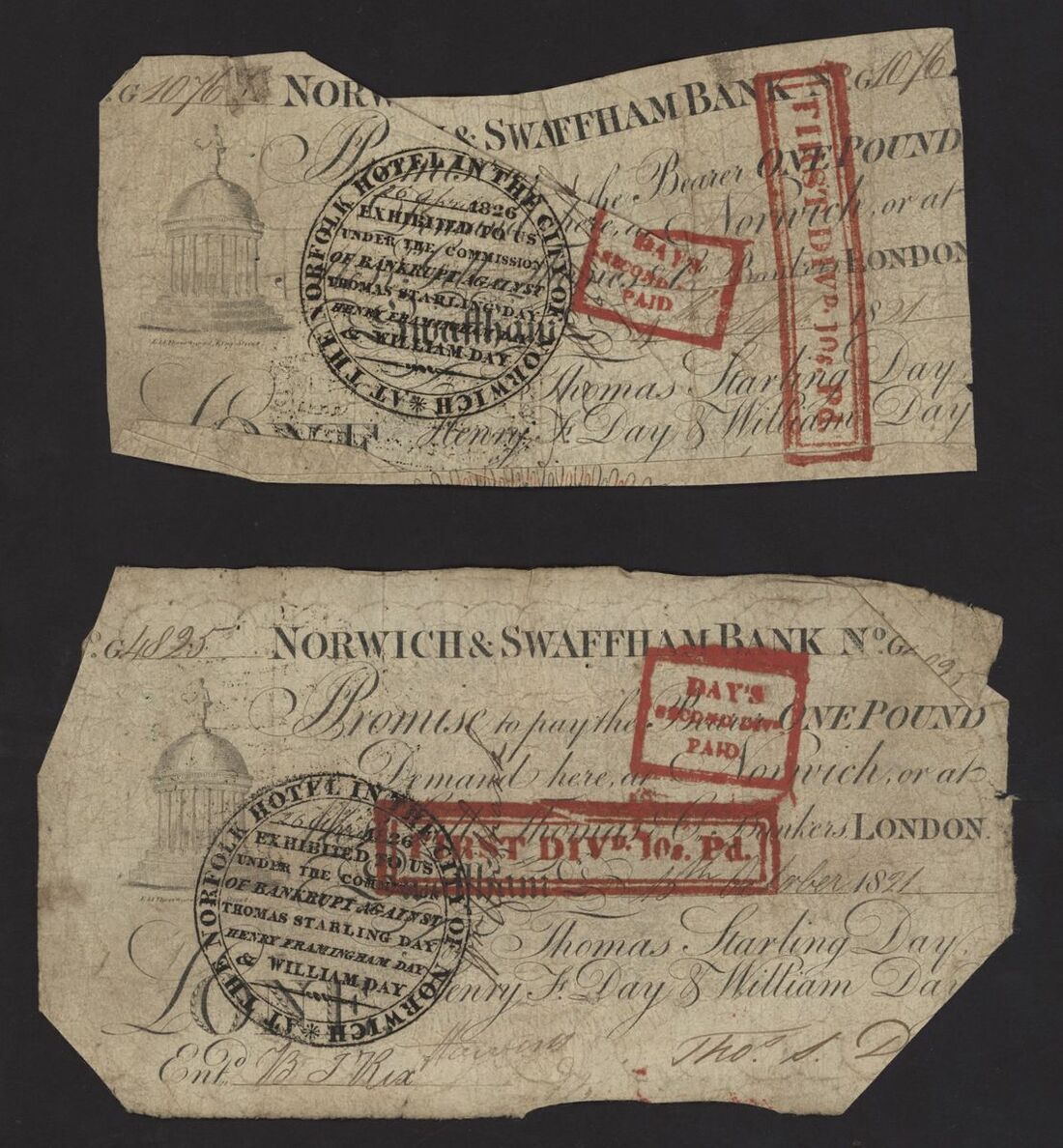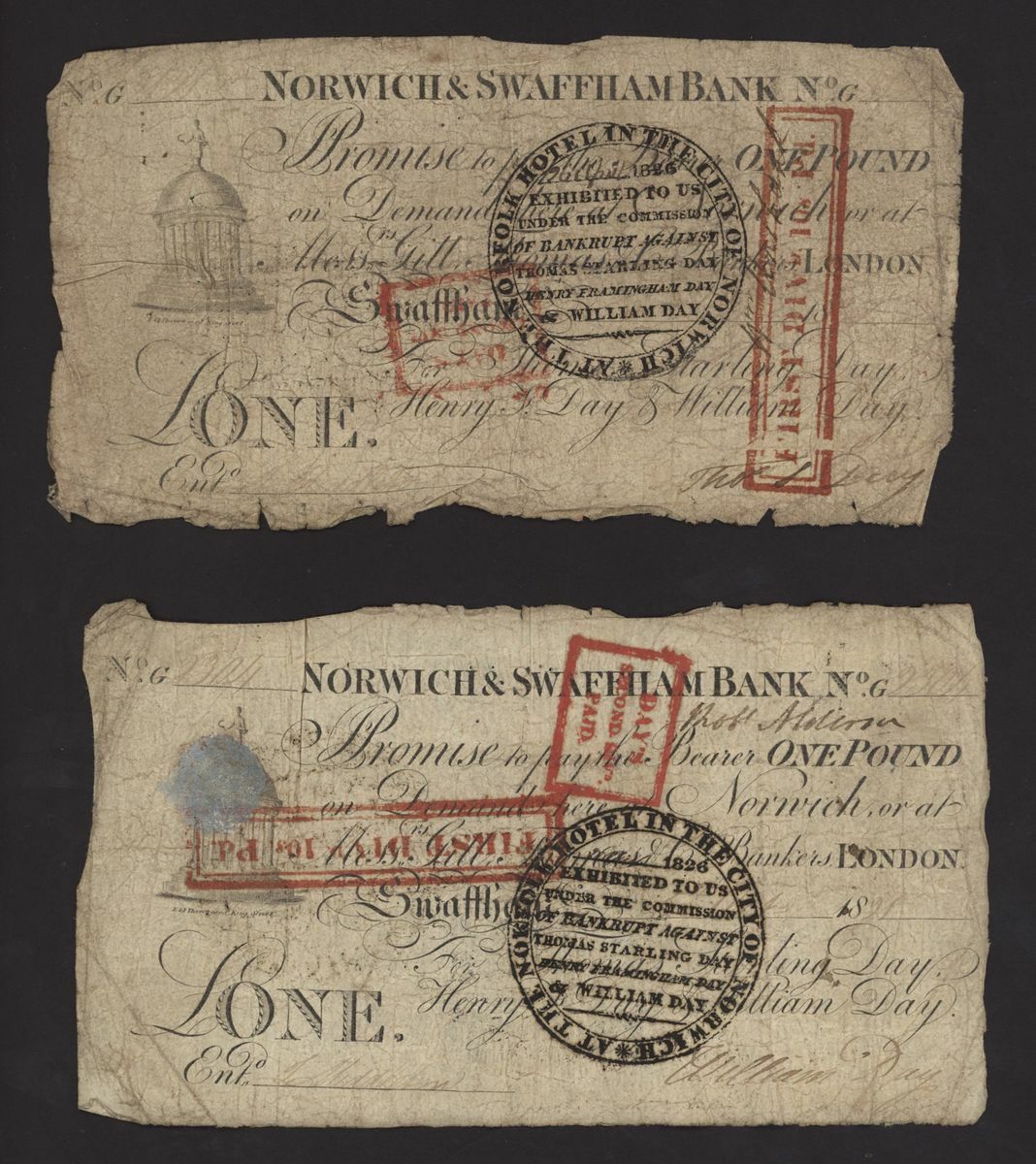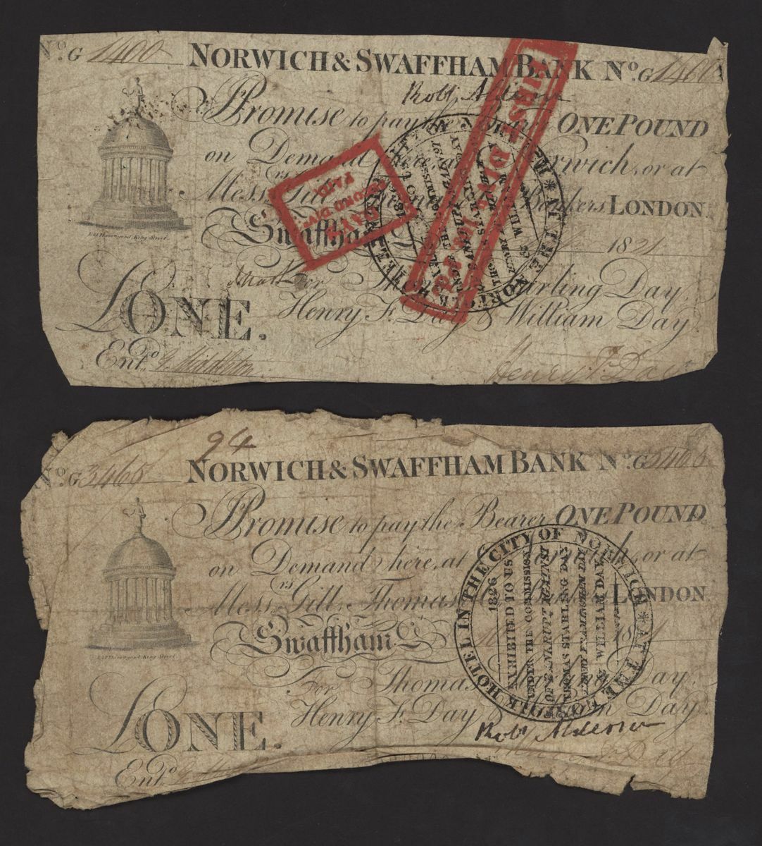 Norwich and Swaffham Bank, [18 notes] £1, circa 1825, (Outing 1609h), poor to good, many pinholes, missing pieces, ink burns and discolouration (18 notes)