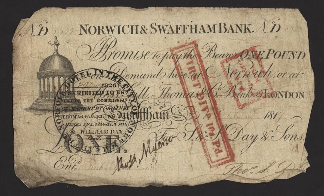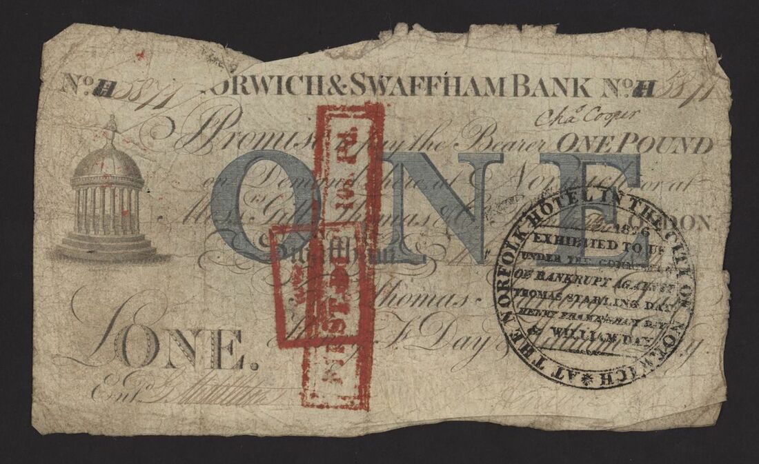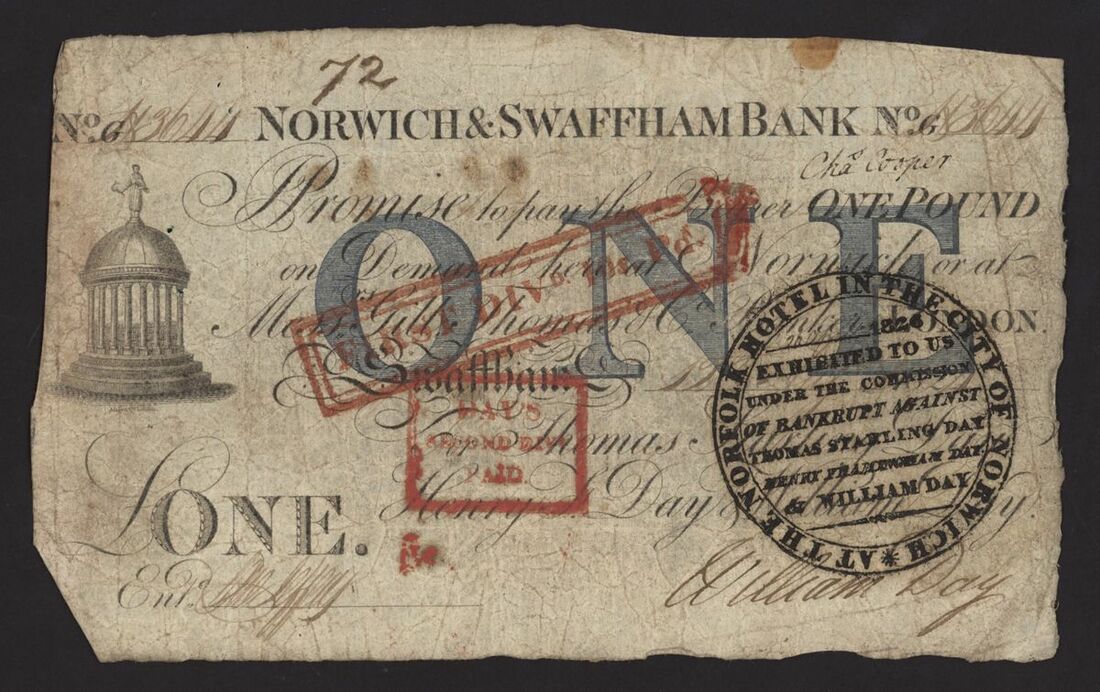 Norwich and Swaffham Bank, [3 notes] £1, circa 1818, (Outing 1609a, 1609i, 1609i), fair to good, many pinholes, ink burns and discolouration (3 notes)