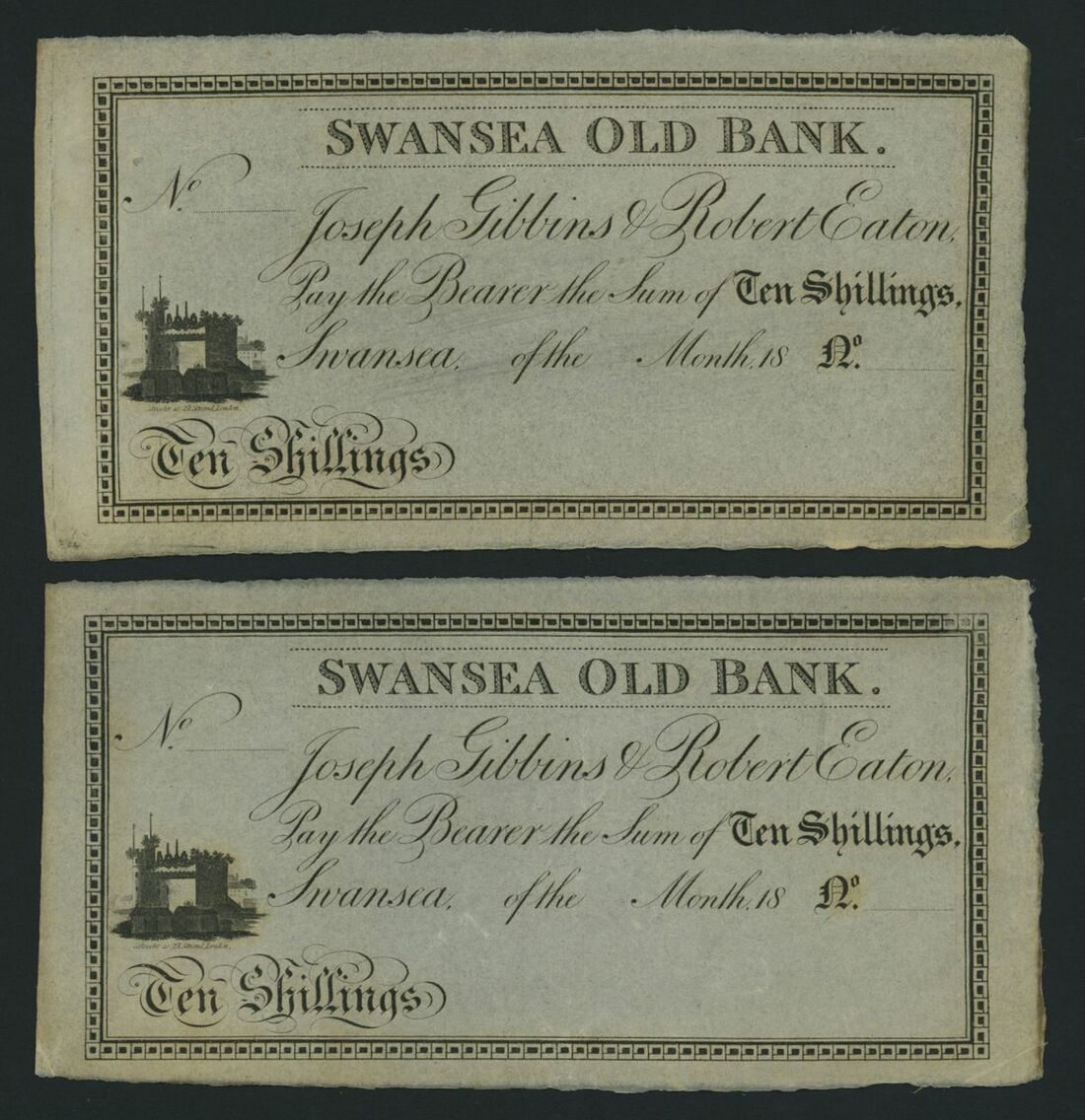 Swansea Old Bank, [2 notes] 10/- unissued, 18--, (Outing 2121b, 2121b), very fine (2 notes)