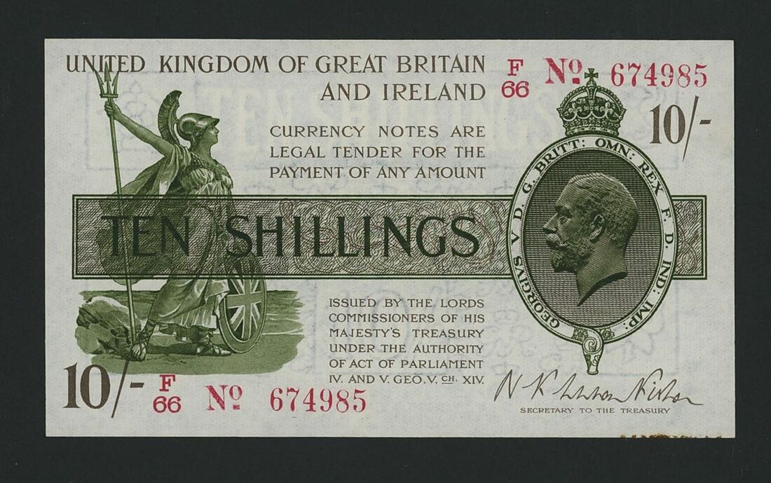 Treasury, 10 Shillings, ND (1919), red serial number F/66 674985, N. F. Warren Fisher signature, first issue, (EPM T26, Pick 356), extremely fine