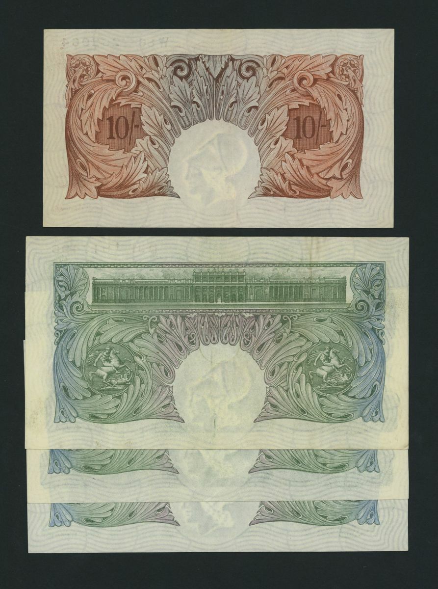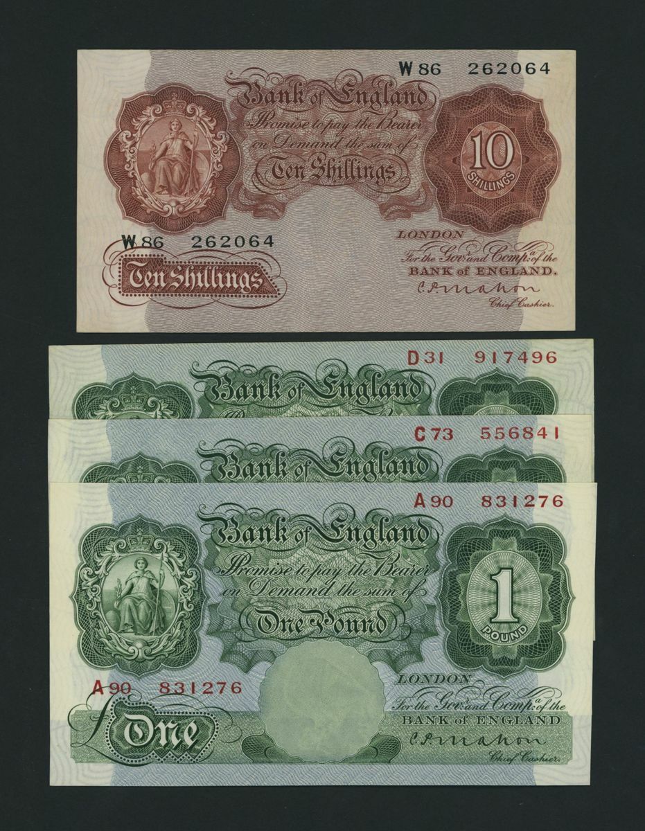 Bank of England, [4 notes] 10 Shillings, £1, ND (1928), C. P. Mahon signature, including one first series note (B212), serial numbers W86 262062, A90 831276, C73 556841, D31 917496