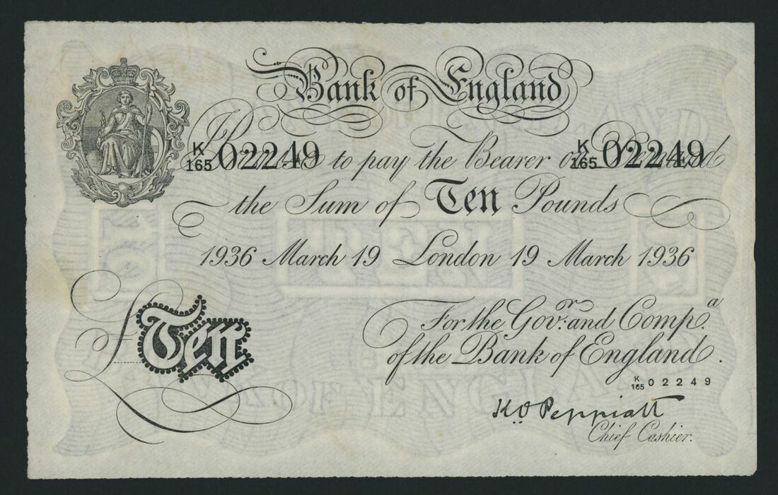 (x) Operation Bernhard, Nazi counterfeit £10, 19th March 1936, serial number K/165 02249, K. O. Peppiatt signature, (Pick 336Ba, EPM B242*), extremely fine, pinholes, toning