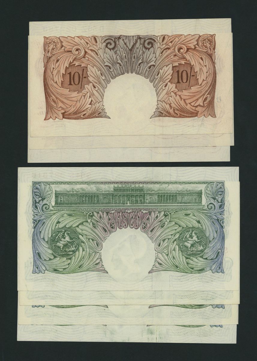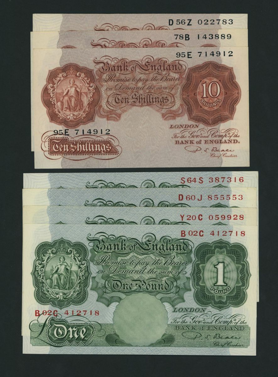 Bank of England, [7 notes] 10 Shillings, £1, 1950, P. S. Beale signature, serial numbers: 95E 714912; 78B 143889; D56Z 022783; B02C 412718; Y20C 059928; D60J 855553; S64S 387316
